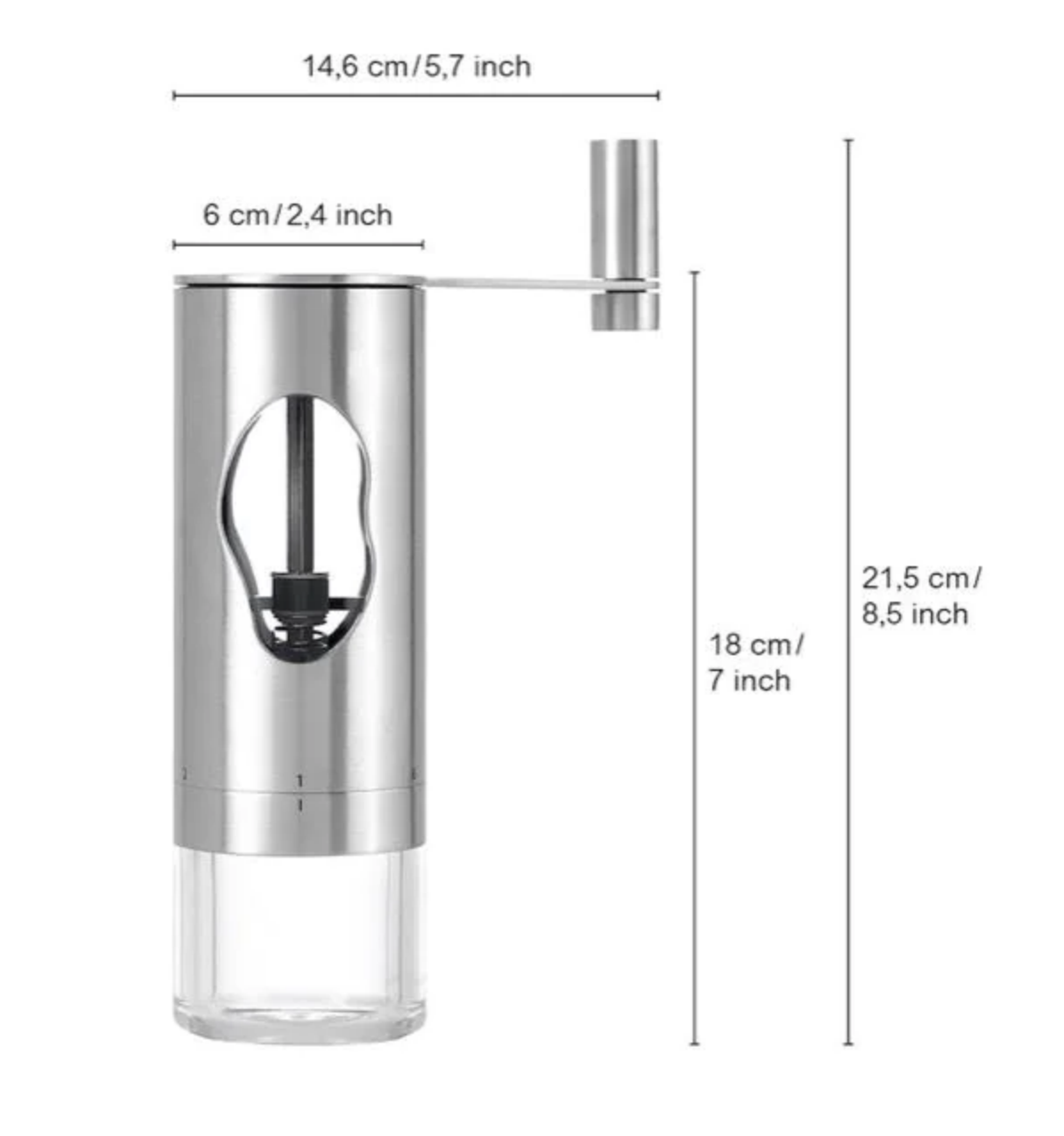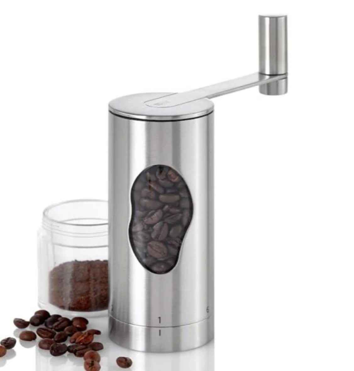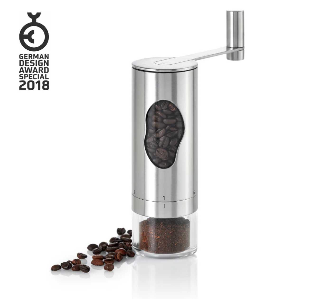 The fragrance of freshly ground coffee beans – simply wonderful! And the invigorating specialities that confident coffee aficionados make out of them are even more delicious... AdHoc developed the MRS. BEAN coffee grinder so that grinding your favourite varieties is effortless. It works manually using an energy-efficient crank handle but otherwise has nothing to do with great-grandma’s old-fashioned hand grinder with its totally modern and very stylish look in elegant stainless steel and acrylic design.