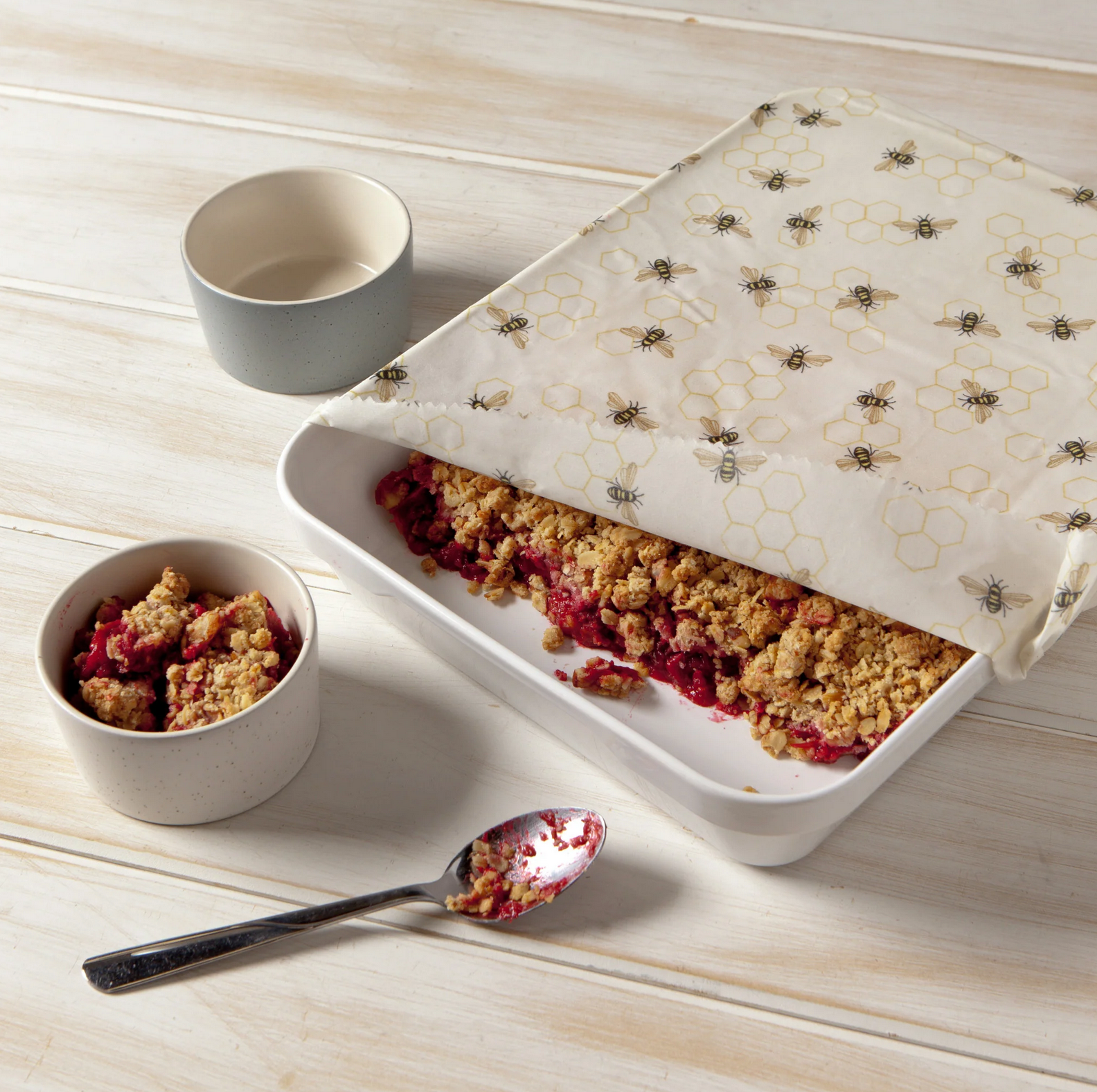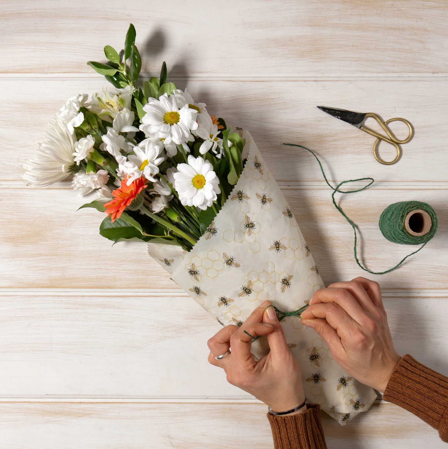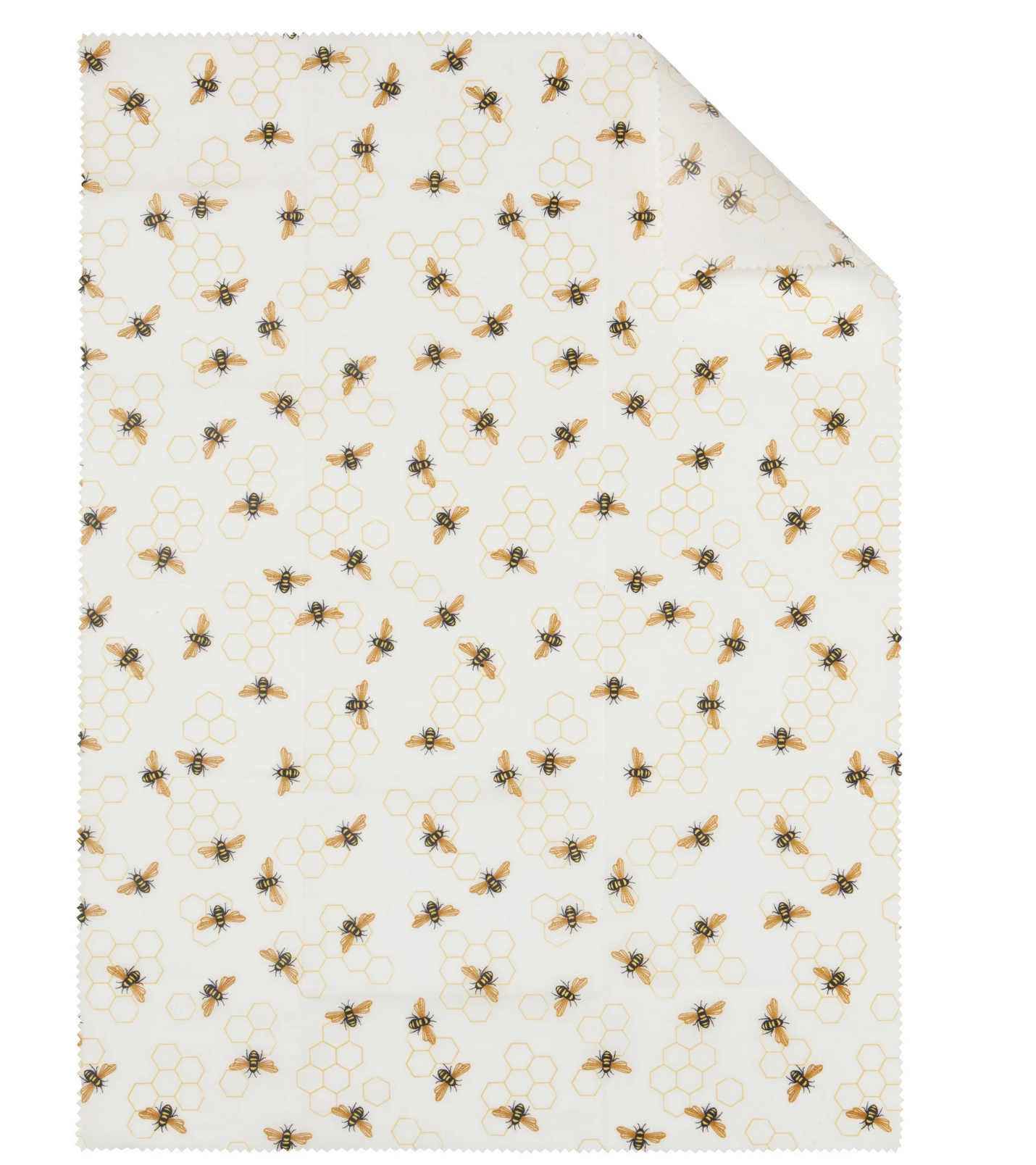 Busy bees are welcome in your kitchen. Cover large bowls, baking dishes or wrap up a feast with this XL sheet of beeswax wrap that protects food and allows it to breath. Each design is created to enhance your life with vibrant colours and fun patterns.