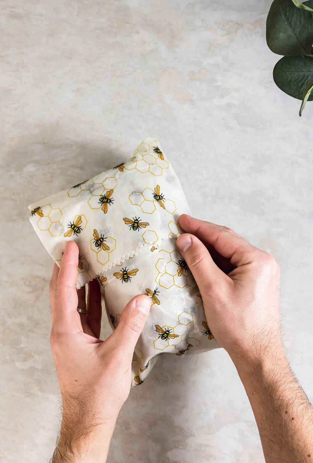 Beeswax wraps are all-natural breathable wraps and bags that keep leftover food fresher for longer. A beeswax wrap is reusable, compostable, and is the perfect alternative to plastic wrap. A convenient and pretty way to eliminate single-use plastic products from your pantry.