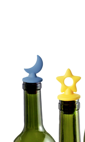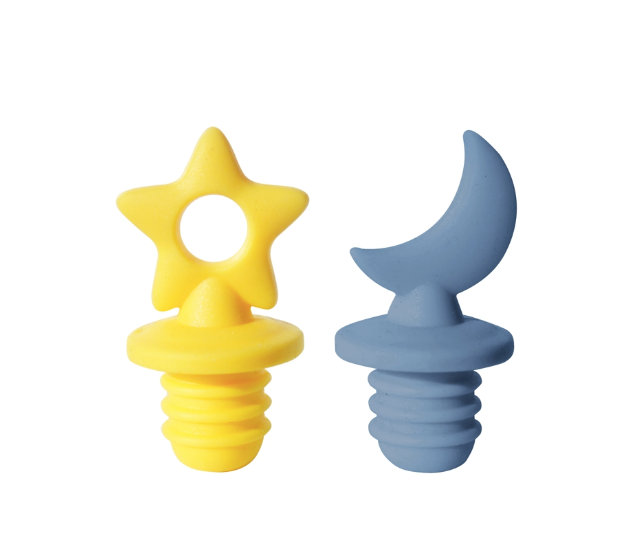 - Bottle Stoppers, set of 2, moon & star, silicone.