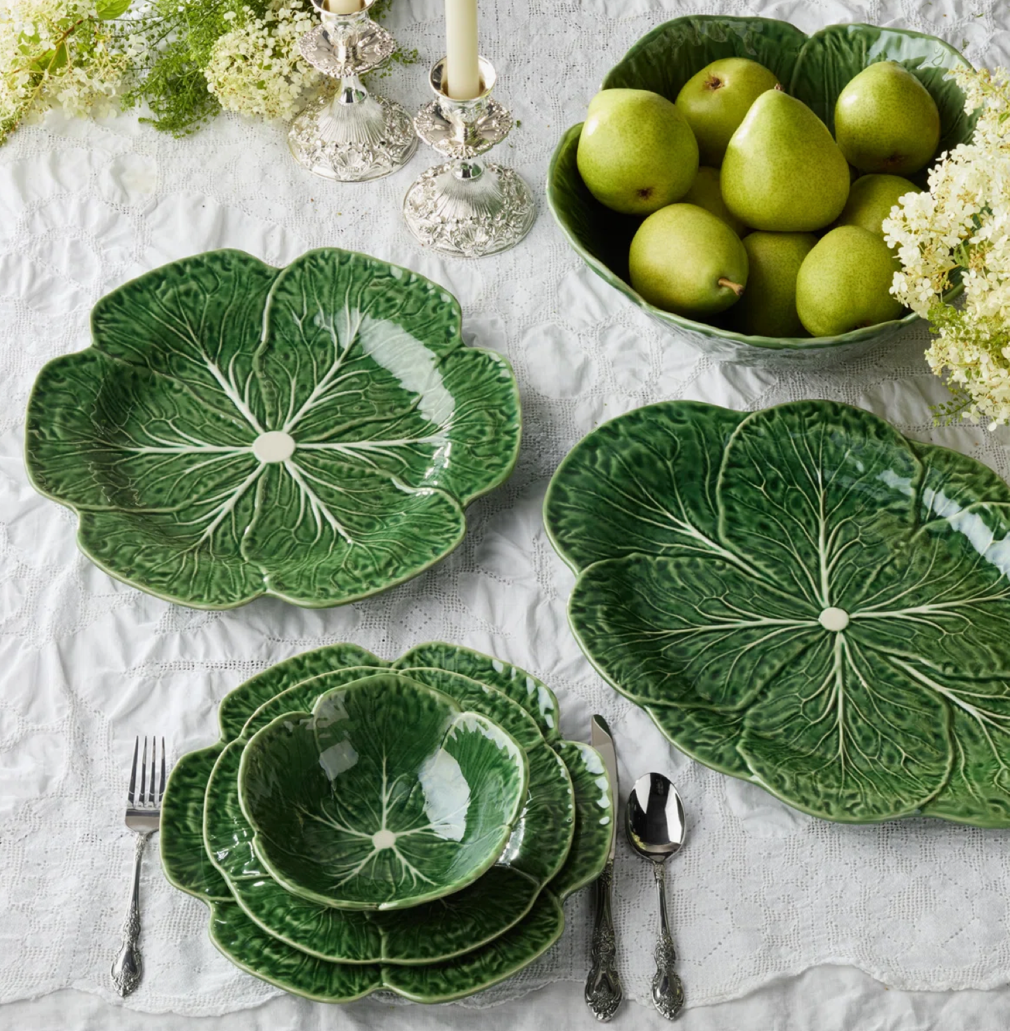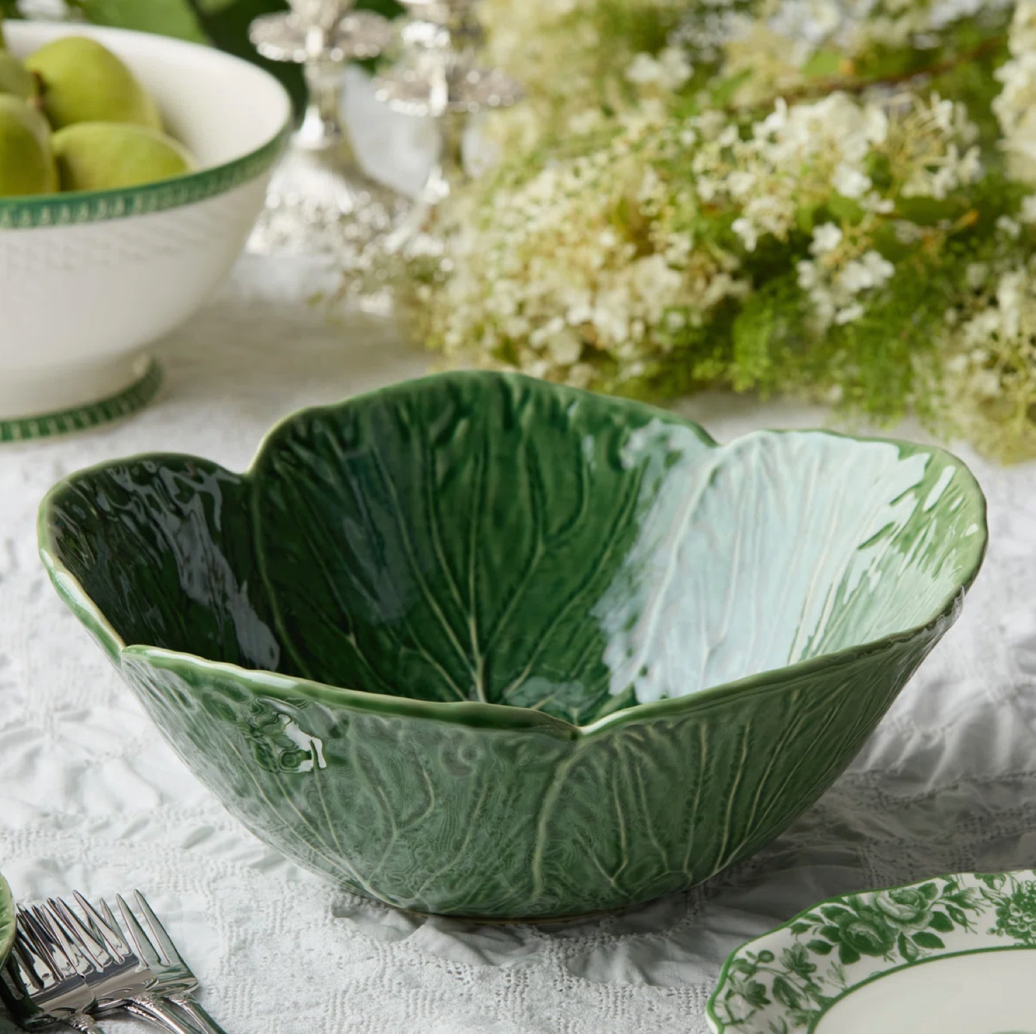Elevate your morning routine or snack time with the Le Jardin Cabbage 3-D Cereal Bowl, an 7-inch ceramic bowl modelled after the natural shape and texture of a cabbage leaf. Featuring a high-gloss green glaze with hand-detailed white veining, this sculptu Read more