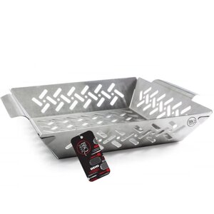 Deep, perforated basket with large handles for safe and even grilling of small, delicate vegetables, seafood, meat and more.
