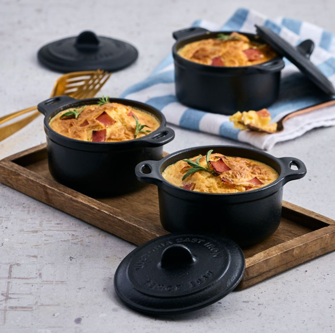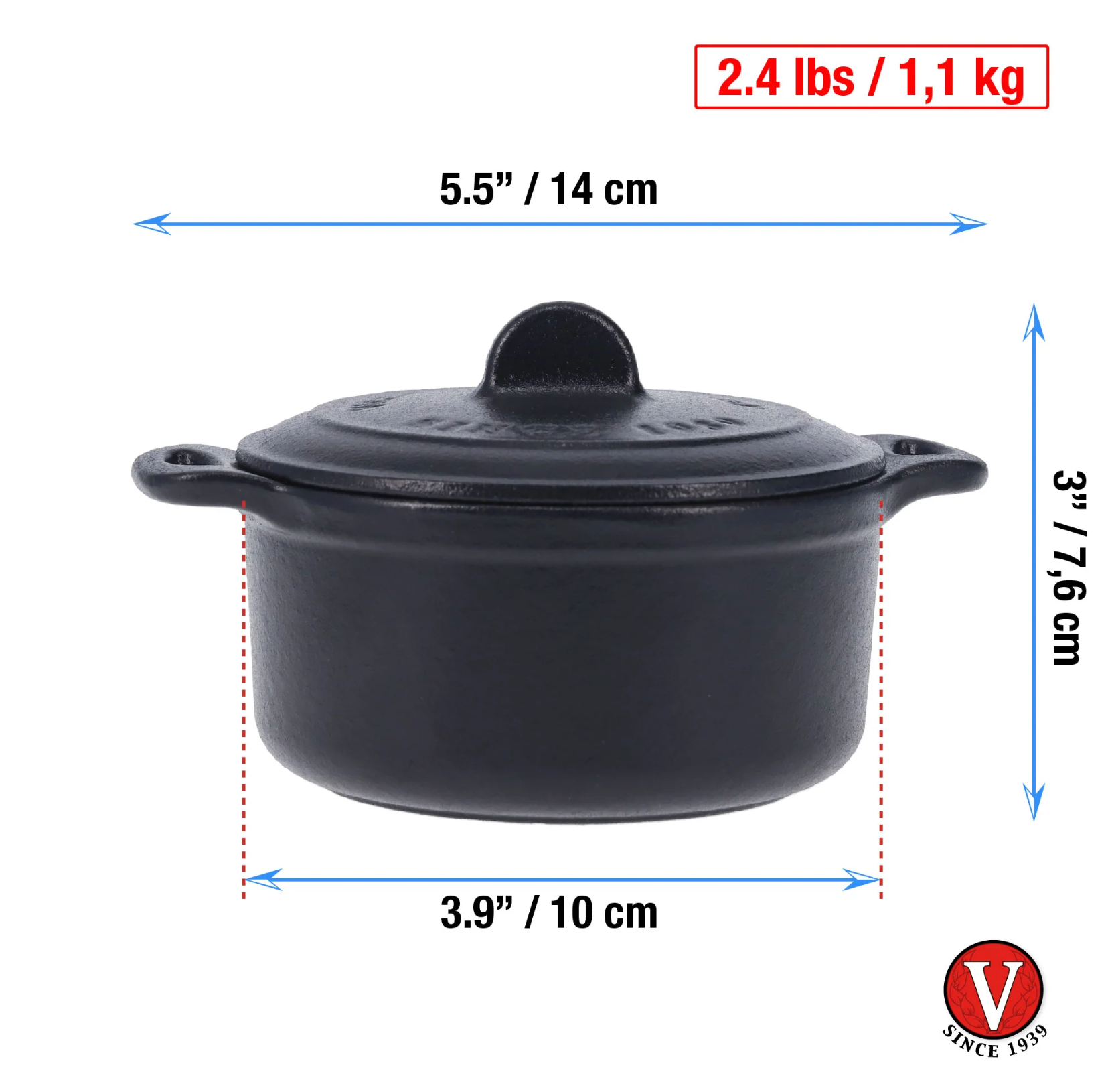 Whether you're serving up individual casseroles, side dishes, stews, or soufflés, the Victoria Mini Cast Iron Cocotte delivers the elegance of fine cookware with the rugged durability of cast iron. Preseasoned with 100% non-GMO flaxseed oil, it offers a n Read more