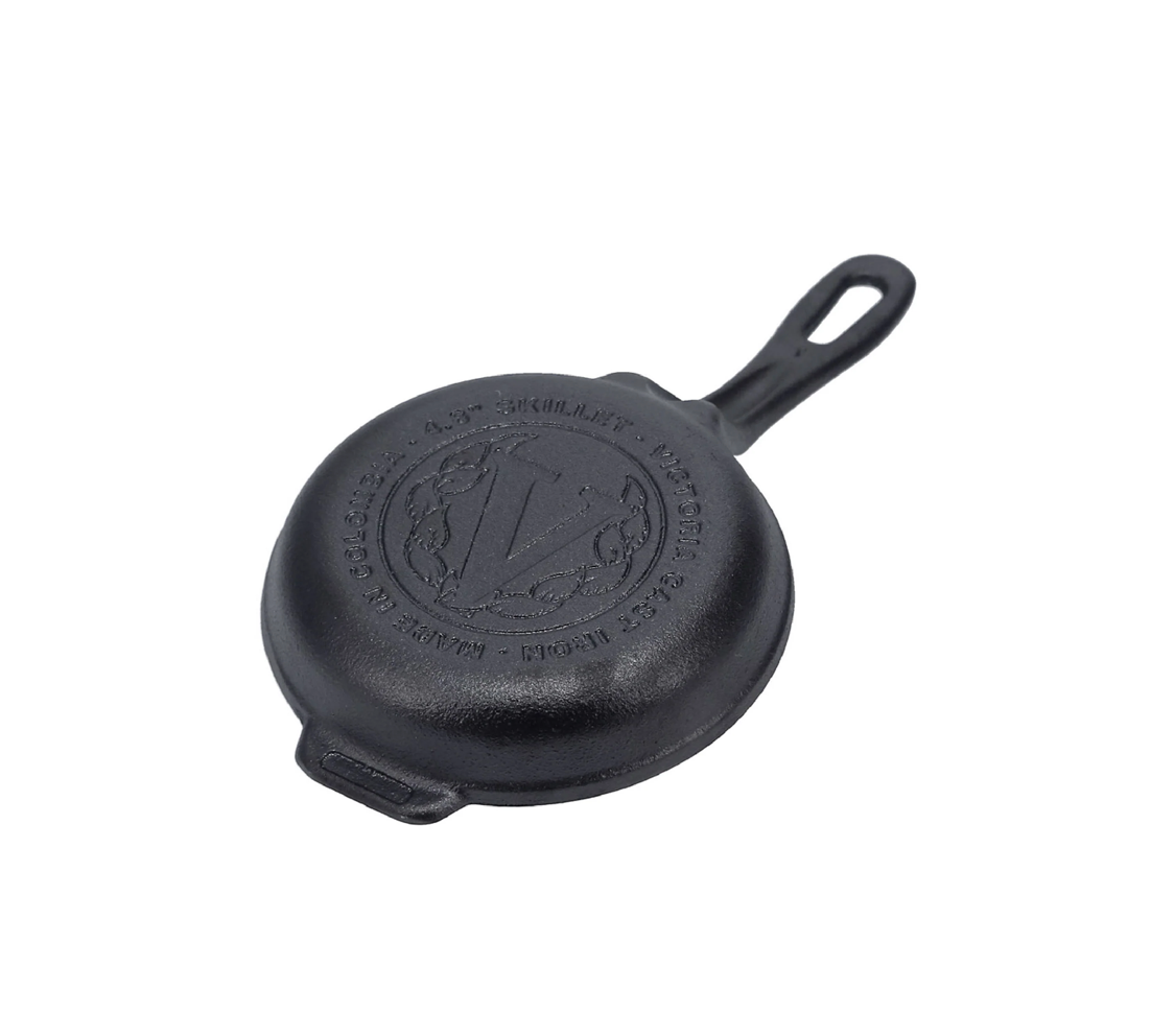 The Victoria 4-Inch Cast Iron Skillet is your go-to pan for personal portions, side dishes, or small-batch recipes. Whether you're frying an egg, baking a cookie skillet, or serving dips straight from the oven, this tiny pan packs serious power. Read more