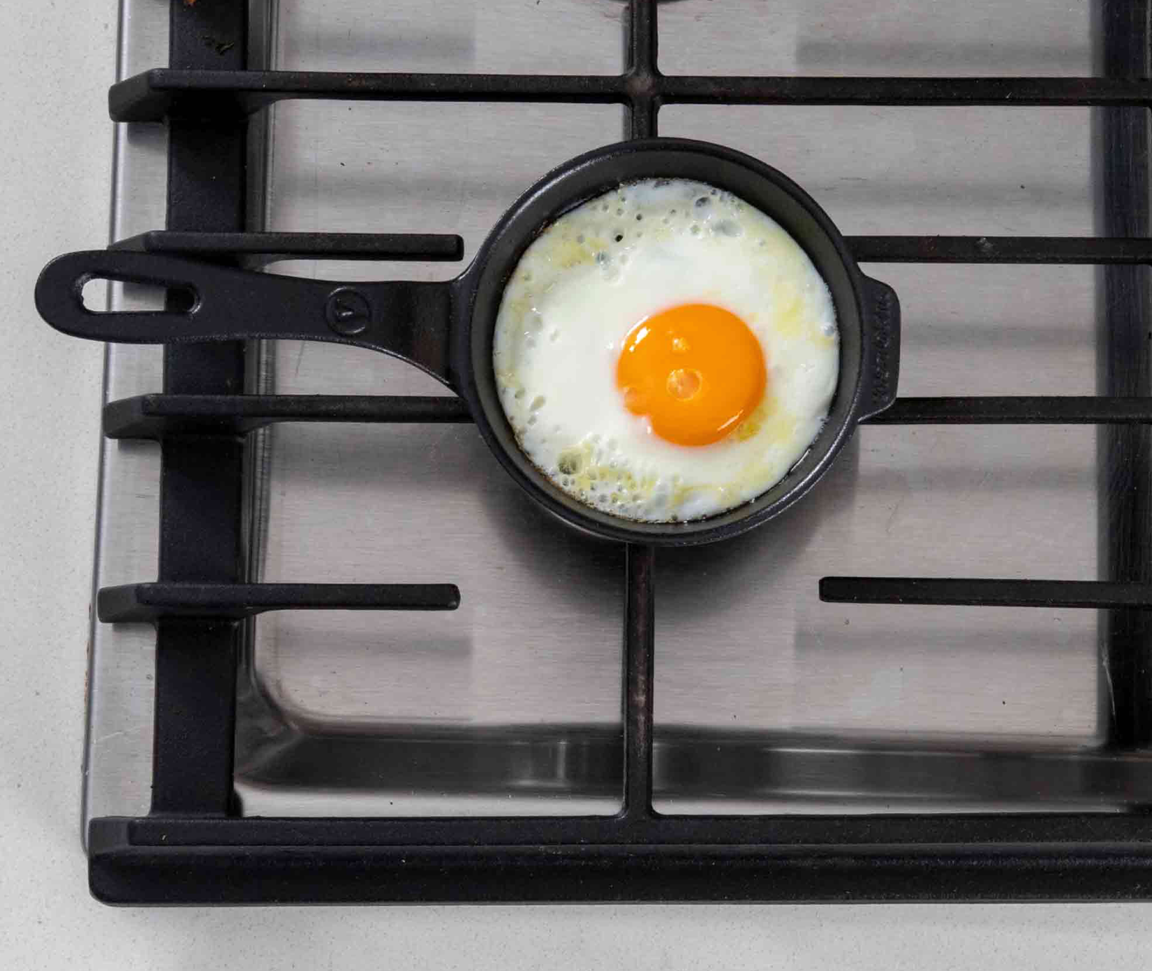 - Mini Skillet, 4.5" / 11.5 cm dia, seasoned cast iron.