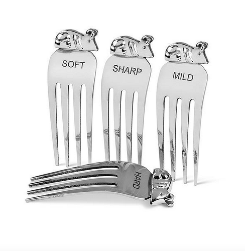 Complement any wine and cheese tasting with the help of this set of 4 Mouse-themed Cheese Markers. Crafted out of stainless steel and brass, each marker includes a description (soft, hard, sharp, mild) – accented with a playful mouse decoration at top to Read more