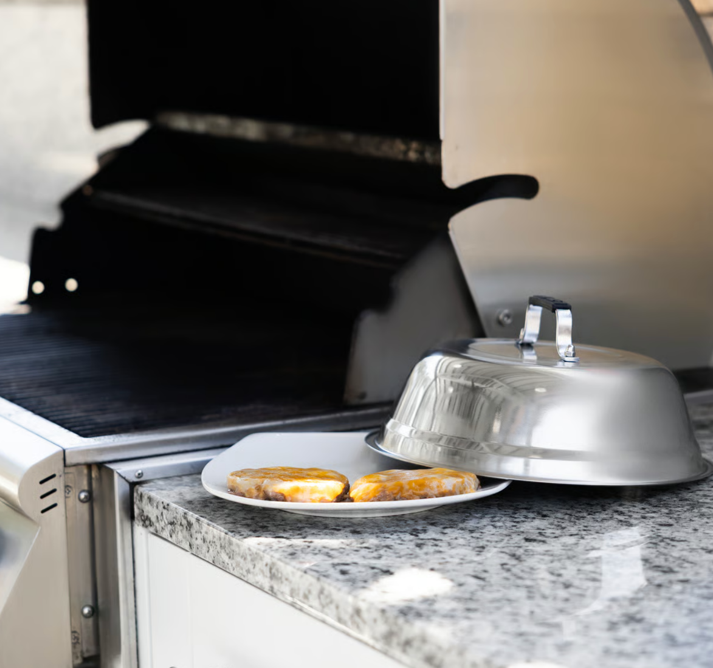 Enjoy delicious melted cheese on your burgers, quesadillas, and grilled cheeses with the Outset Large Stainless Steel Cheese Melting Dome! This 10.75” metal dome traps heat and steam to speed up the cheese melting process. This dome can also be used as a Read more