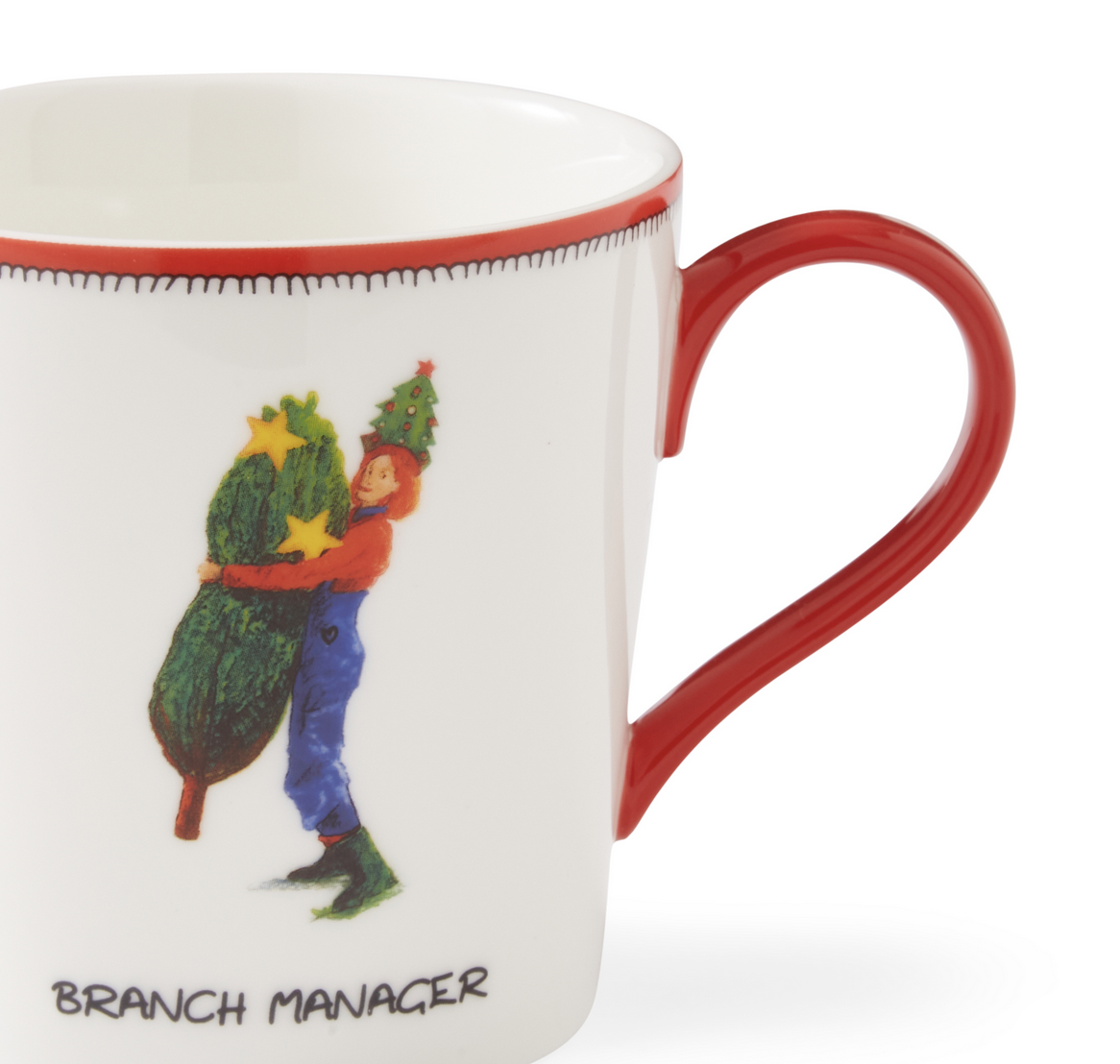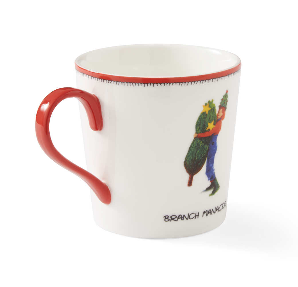 A unique gift, from the Kit Kemp Christmas Doodles collection. This fine china mug is sure to raise a smile with a whimsical illustration painted by Willow Kemp, to celebrate the bringing home of the tree above the tagline ‘Branch Manager’. Striking red s Read more