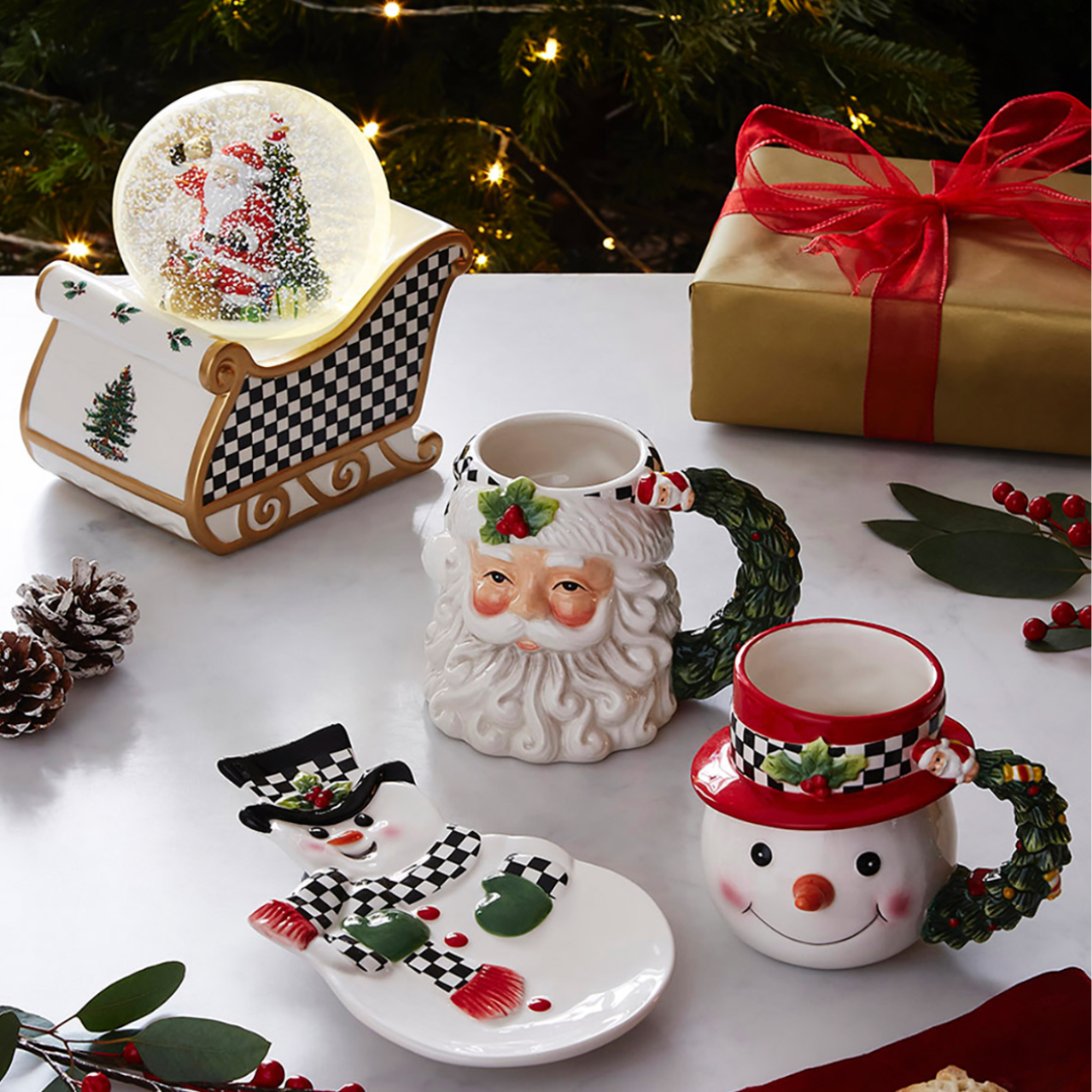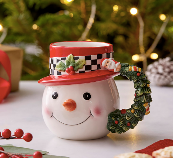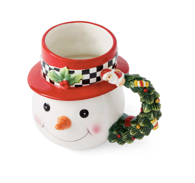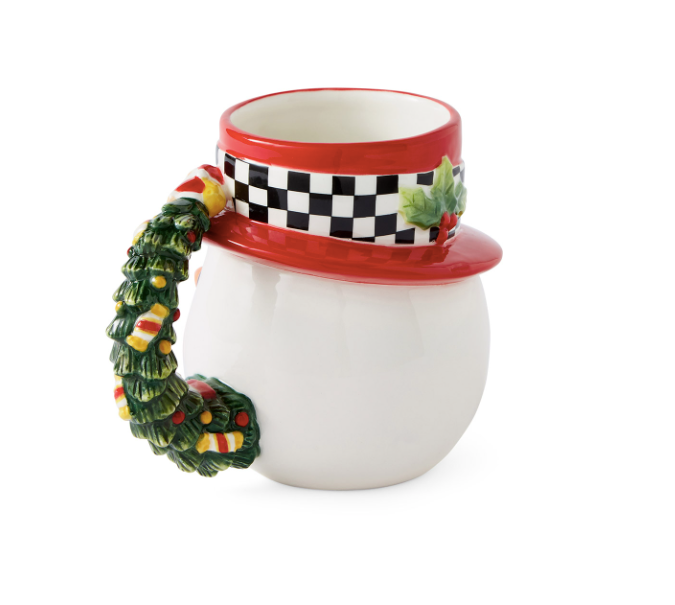 This cheerful Snowman Toby Mug is sure to melt your heart and warm your hands! Shaped like a snowman, this mug features a friendly smile, bright black eyes and a carrot nose to greet you with cheer every morning. Part of the Christmas Tree Black and White Read more