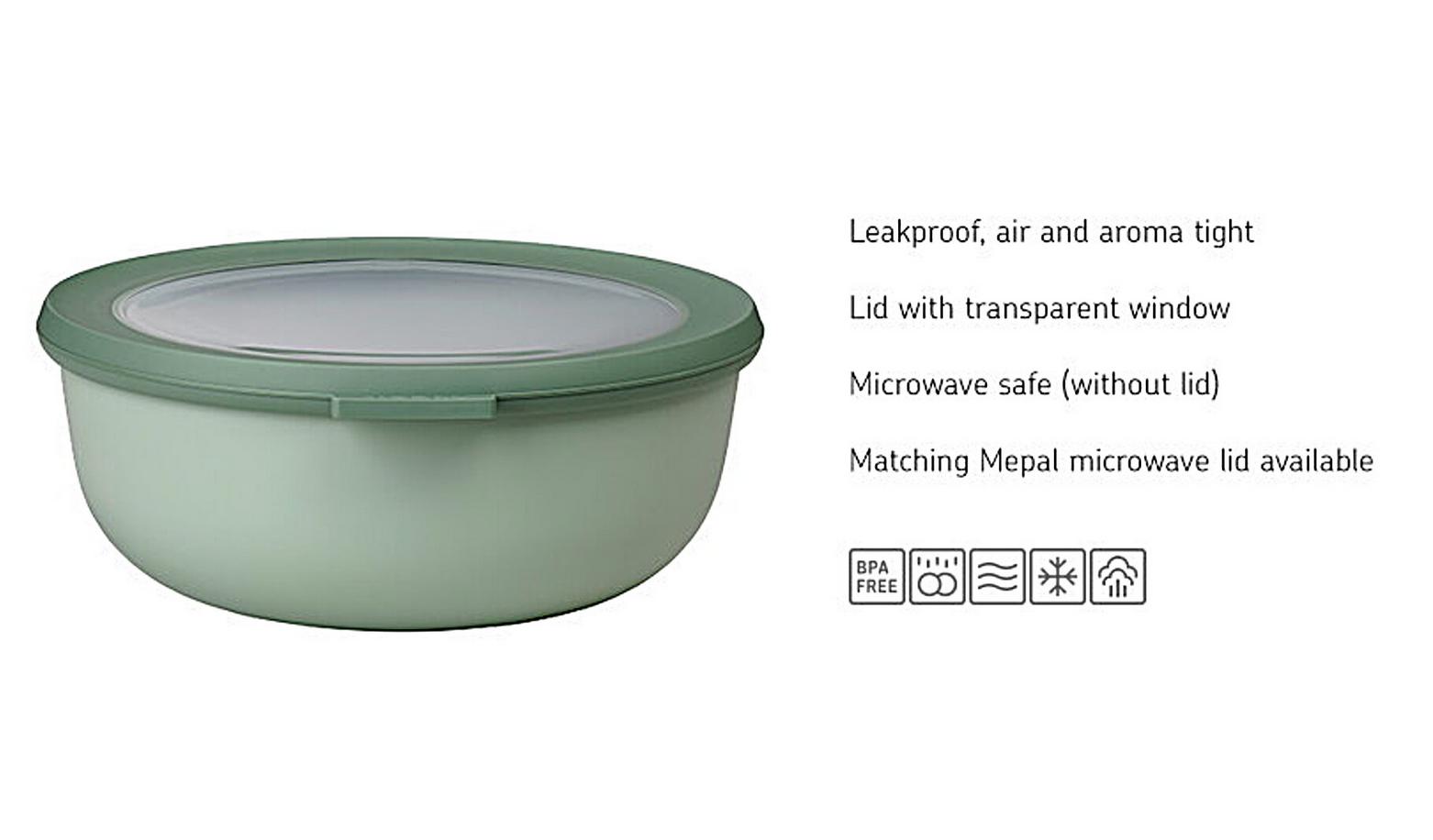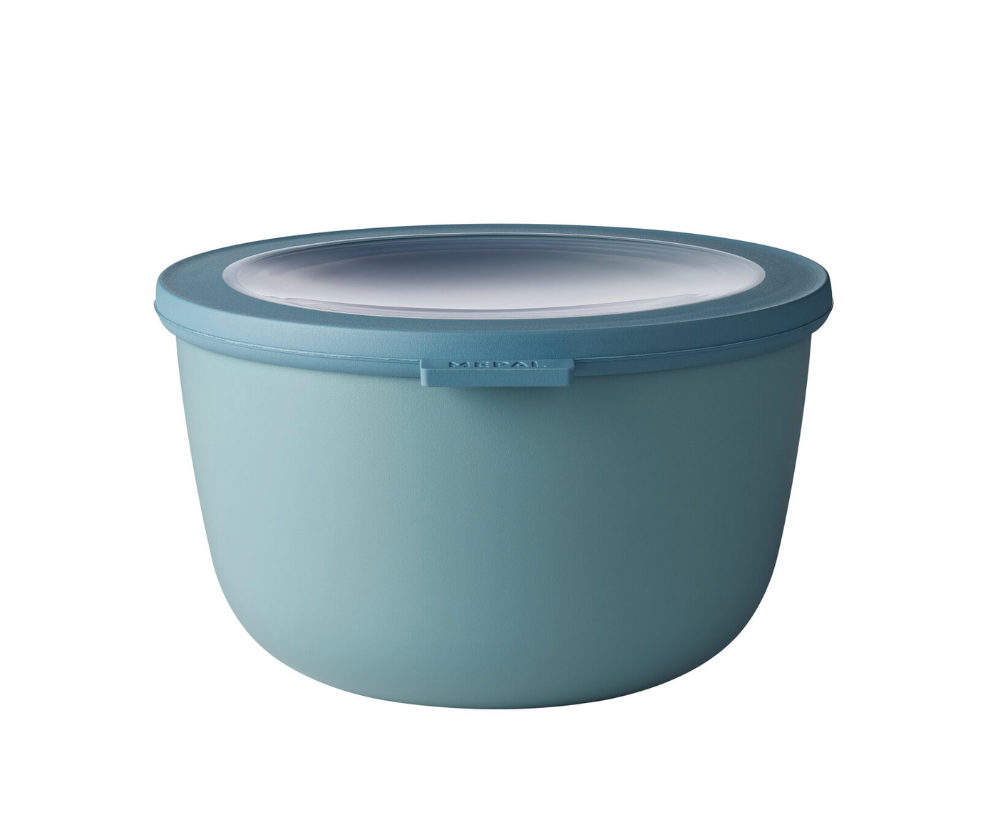 Multi bowl Cirqula 2000 ml / 68 oz in Nordic Teal. This bowl has a capacity of 2000 ml / 68 oz and is perfect for storing or taking large portions of soup, meat or meal size salads. The Cirqula collection from Mepal has been designed specifically for a complete 'circle of use'. The food in these bowls can be stored in the freezer or fridge, heated up in the microwave (without the lid) and can then be served (directly) at the table. The Cirqula is made of indestructible material and the transparent window in the lid allows you to see the contents of the bowl clearly. The innovative, flexible lid is airtight and leak proof. The food will therefore stay fresh longer and can be kept in the bowls and taken along when you are on the go. The Mepal Cirqula bowls are practical and easy to store away because they can be stacked when they are filled and nestled together when they are empty.
