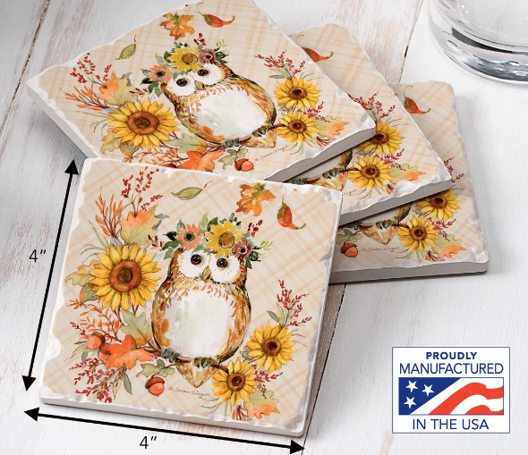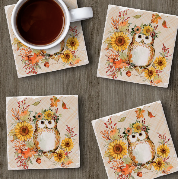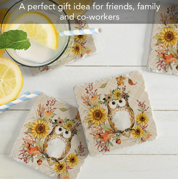 Coaster Absorbent Friendly Owl Set of 4