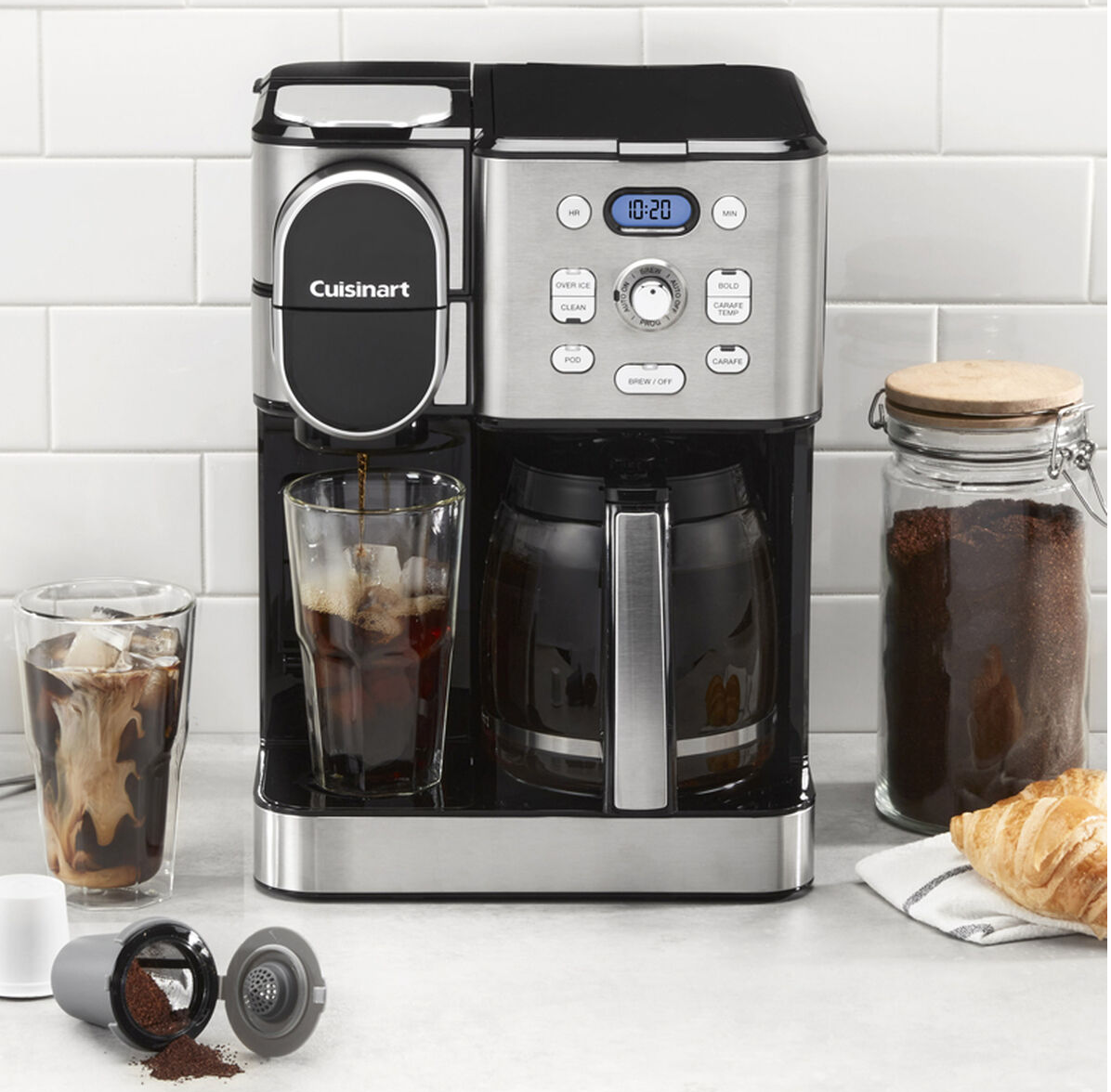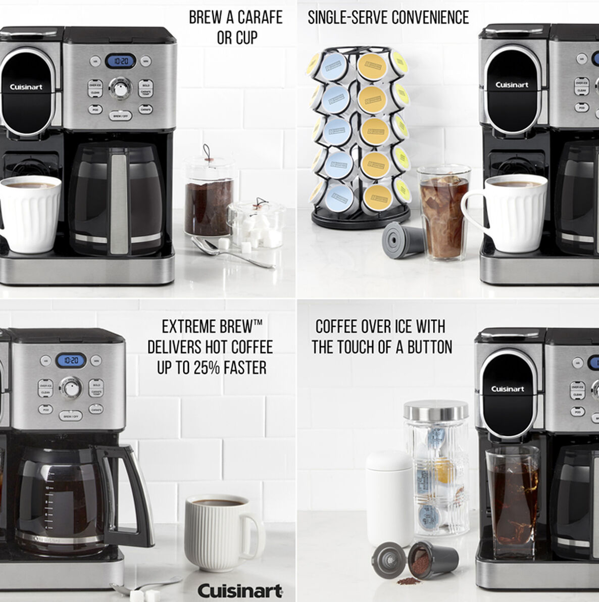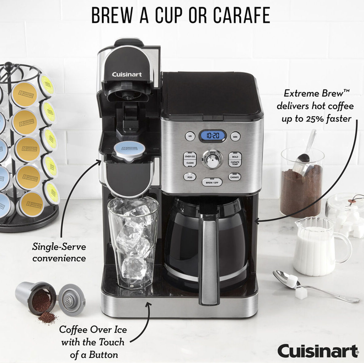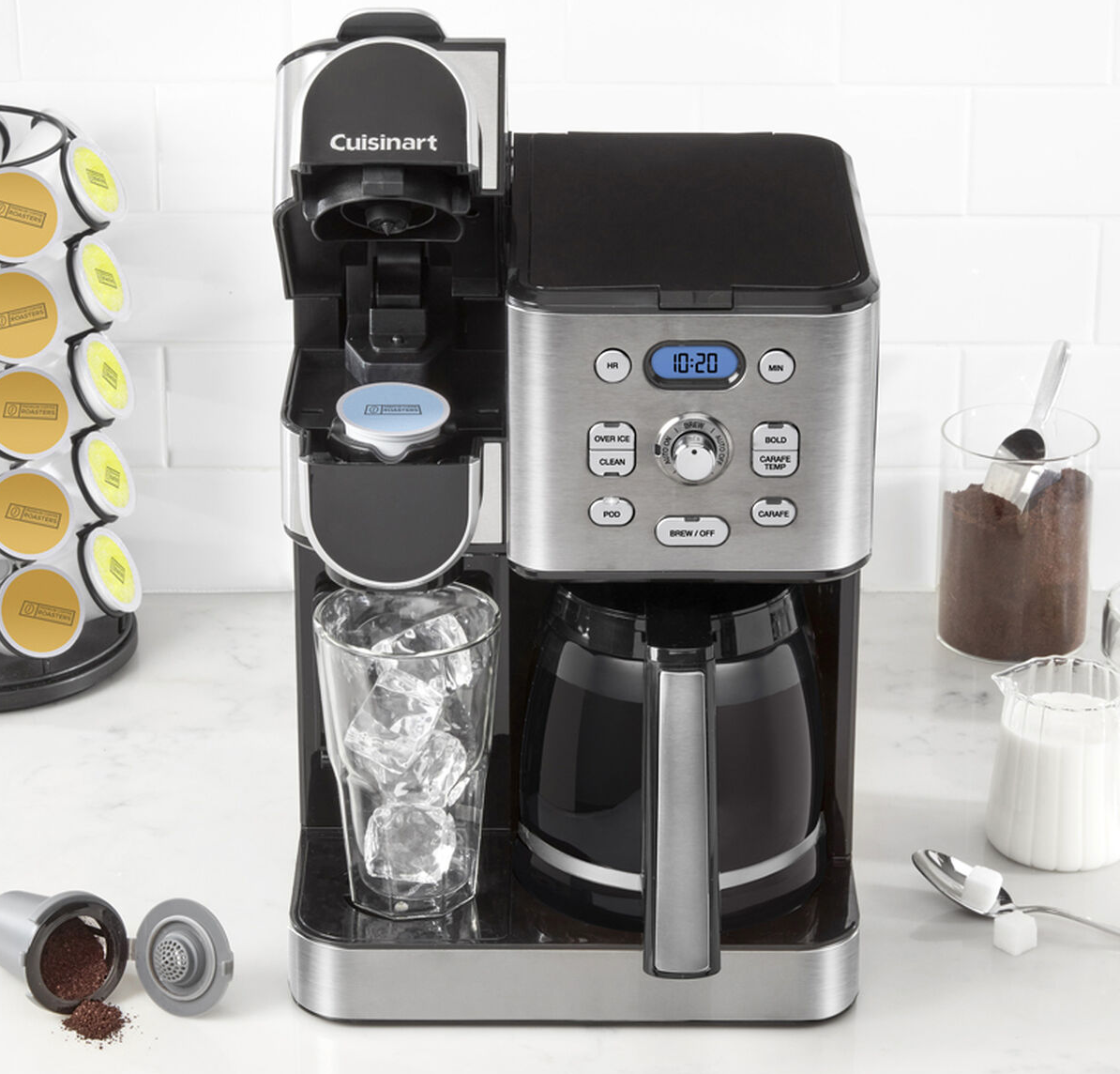 Drip or pod, hot or iced, single cup or carafe for 12—get your coffee with the Cuisinart 2-in-1 Coffeemaker. This kitchen essential for coffee lovers takes home brewing to another level by combining a 12-cup carafe and single-serve options in one convenie Read more