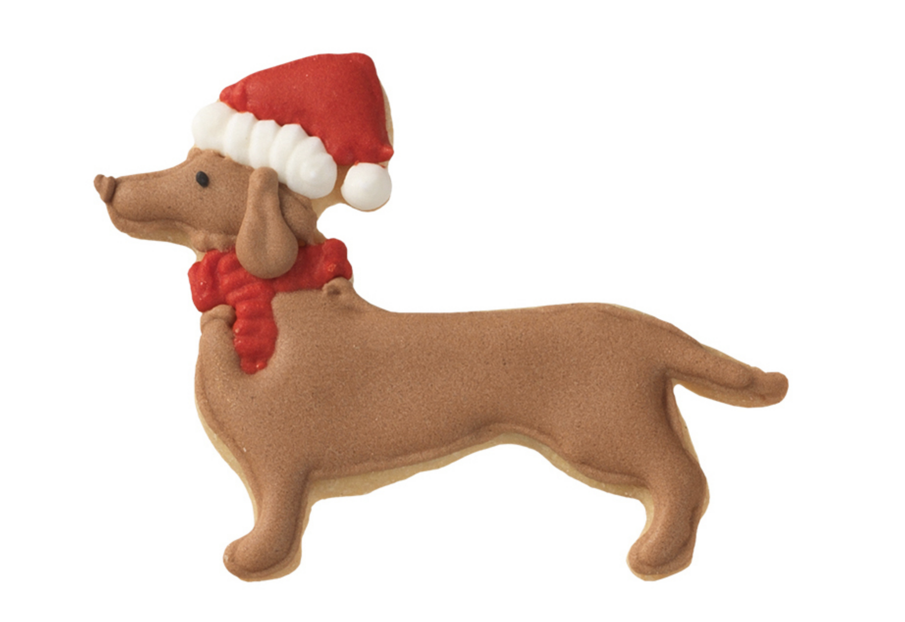 With the inside embossing the dachshund gets its Christmassy look with scarf and Christmas cap. decorated with sugar pearls, sprinkles, icing, Chocolate and the cookies Food colouring become to bite into. A great gift idea and nice attention at Christmas Read more