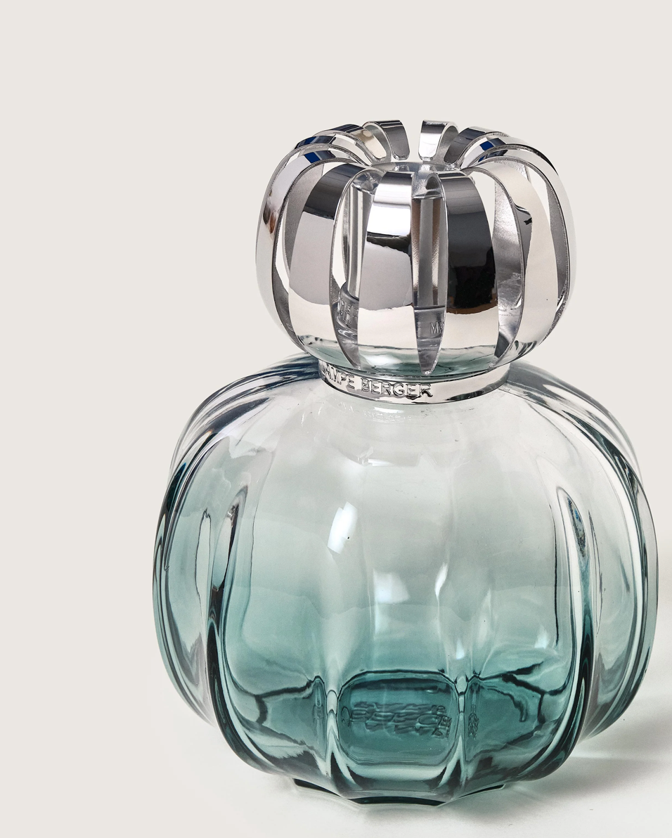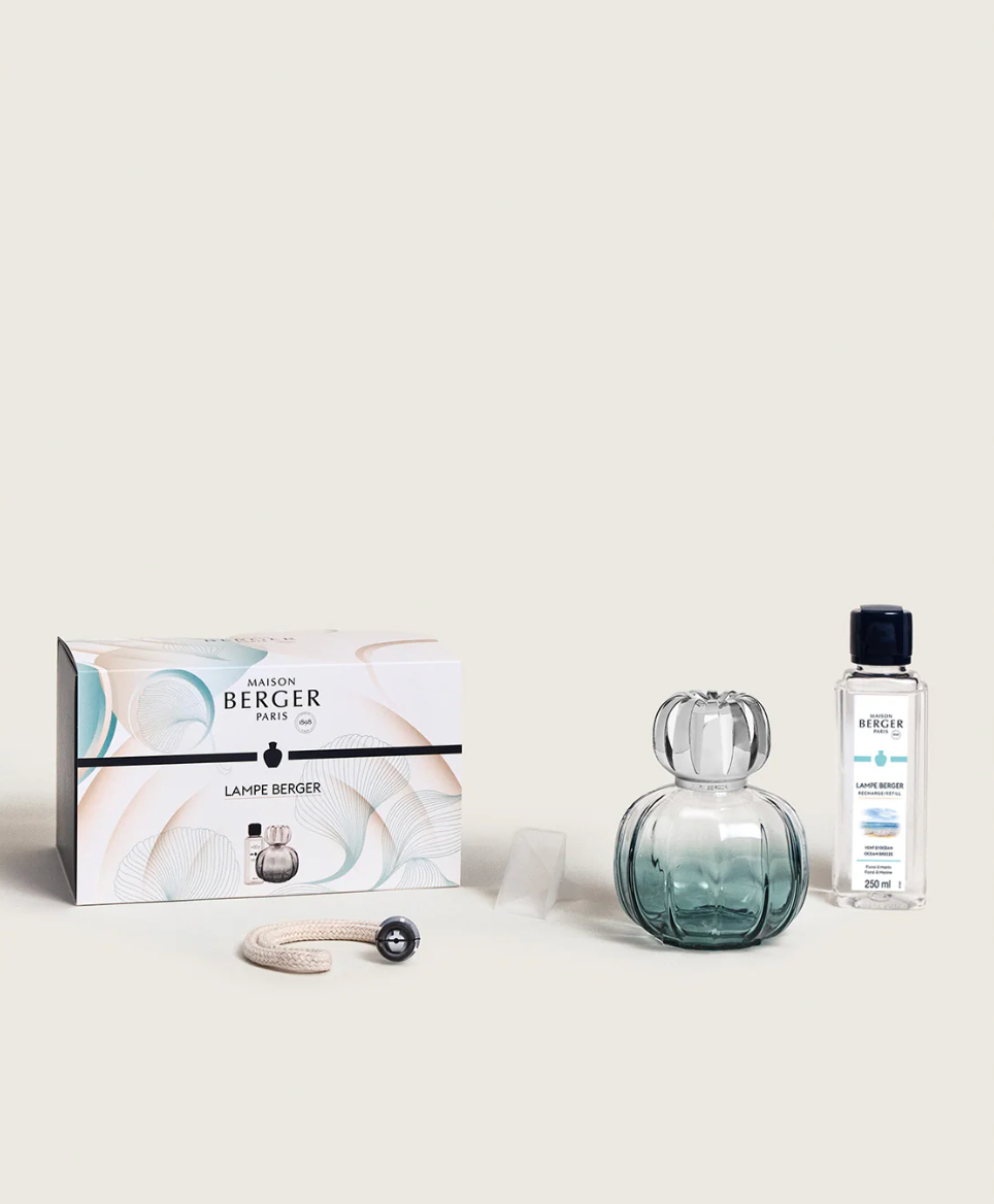 Spring is in the air! A fragrance lamp in a delicate gradient peacock green hue and fresh fragrance promise new beginnings. The Ocean Breeze home fragrance is a breath of marine air in an exotic sea spray.