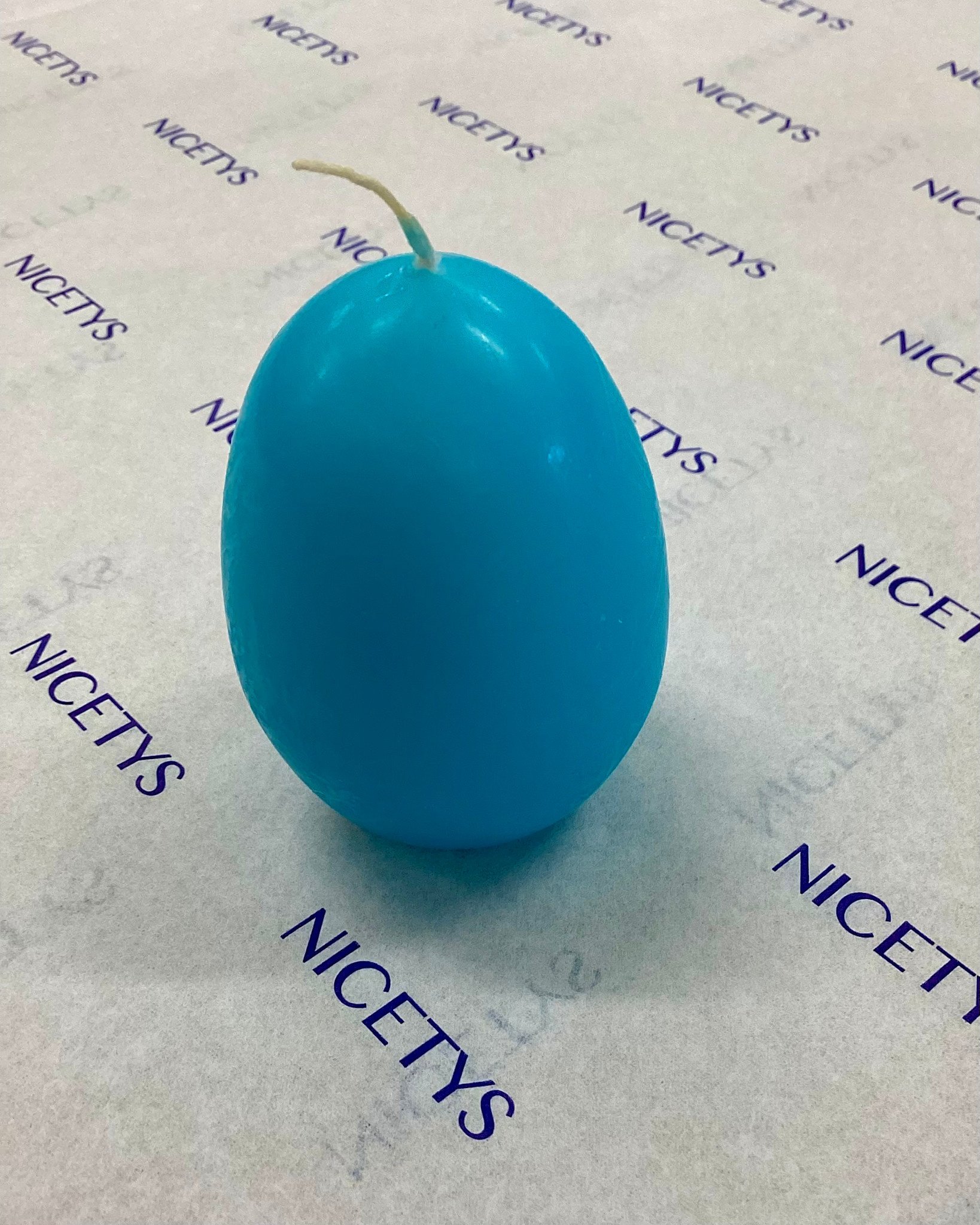 The cutest Egg Shaped Candle in blue. Perfect for decorating your table, and put it in an egg cup for added cuteness.