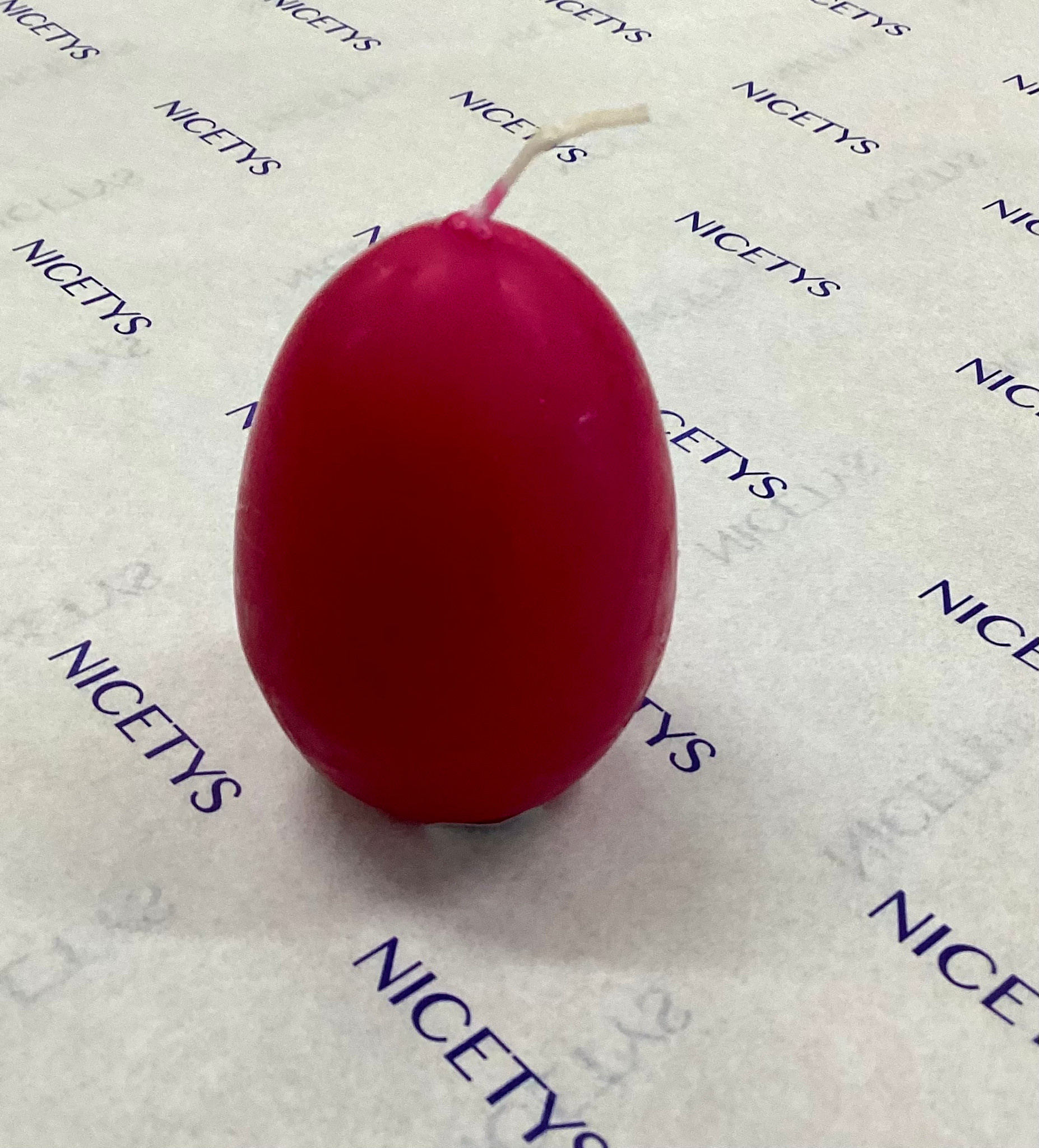 The cutest Egg Shaped Candle in dark pink. Perfect for decorating your table, and put it in an egg cup for added cuteness.
