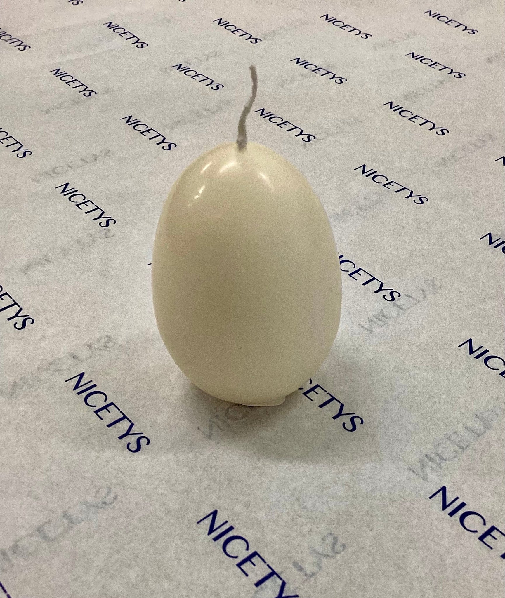 The cutest Egg Shaped Candle in White. Perfect for decorating your table, and put it in an egg cup for added cuteness.