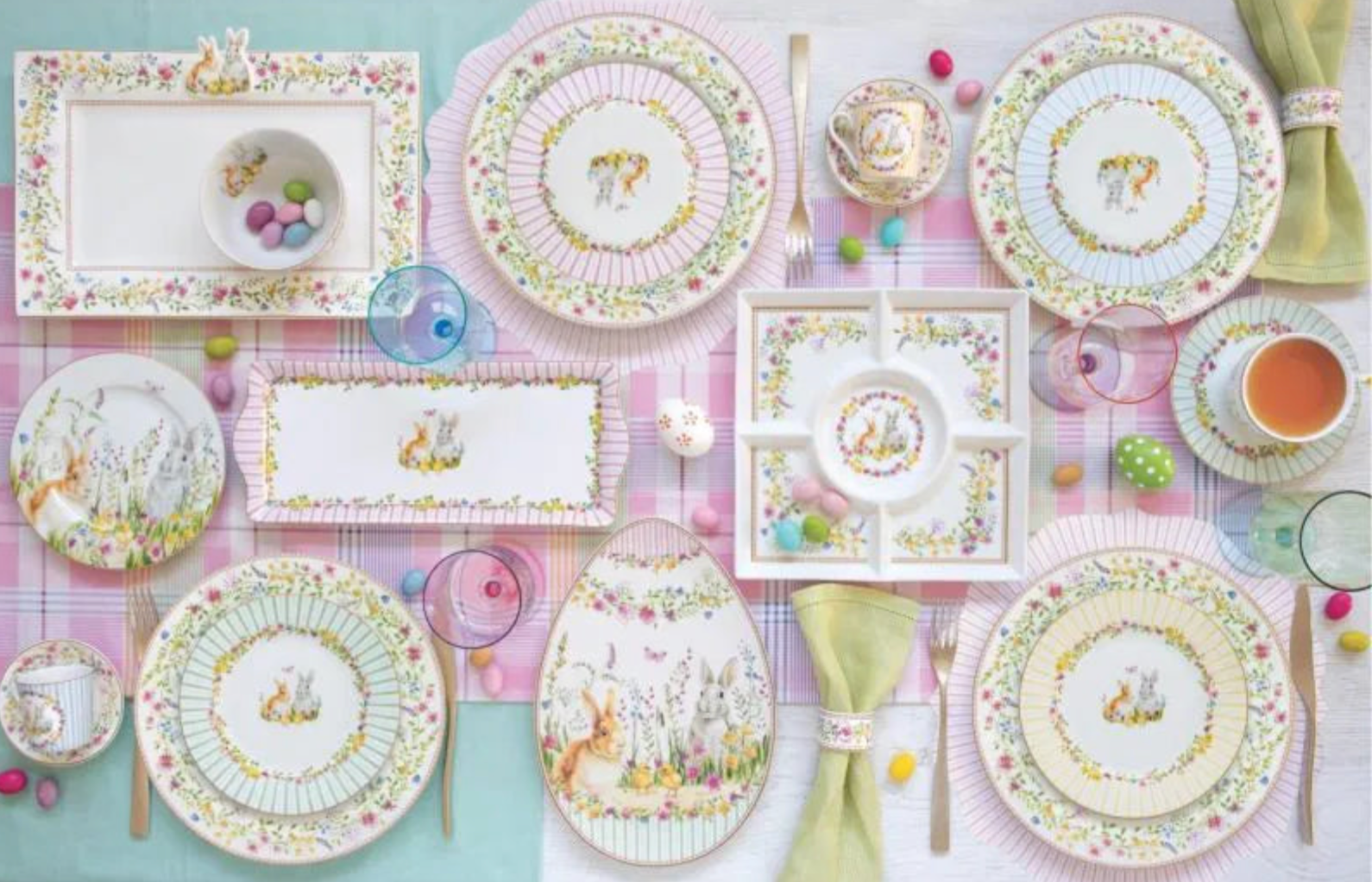 Egg Shaped Serving Platter with two adorable bunnies and floral decor.  Read more