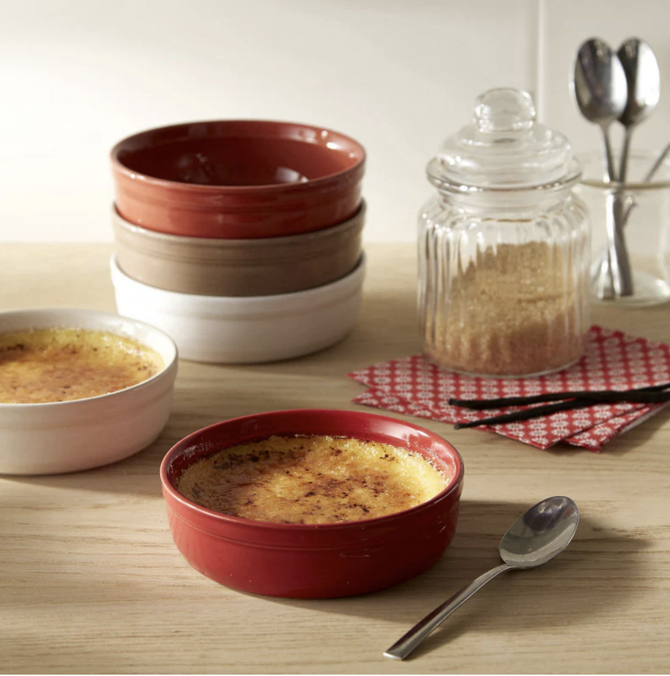 Crème brûlée dishes have a perfectly flat surface and a diameter of 12cm, ideal for caramelizing sugar with a blowtorch or hot iron.