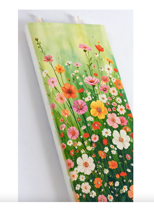 Capture the vibrant essence of a wildflower meadow with the joyful Spring is Here candle. Dotted with delicate, multi-colored blooms and sparkling accents, this design evokes a sense of renewal and the airy freedom of a field in full blossom.