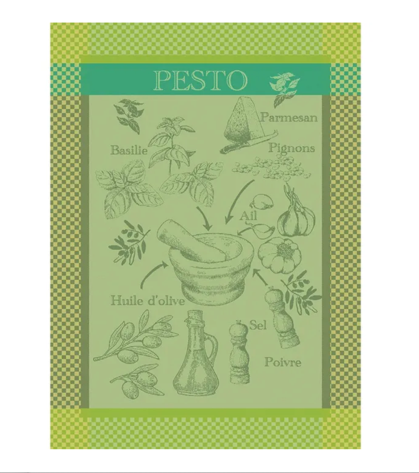 Add Italian flair with the Pesto Verde Jacquard Kitchen Towel, featuring a woven recipe and ingredients for pesto in fresh green tones. Made from cotton jacquard for superior texture and absorbency. Read more