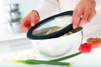 Practical bowl lid from shatterproof glass for AIR tight closure of pots and bowls. The all round sealing ring from silicone adheres to the wall of the container guaranteeing a safe grip and AIR tight closure. Read more