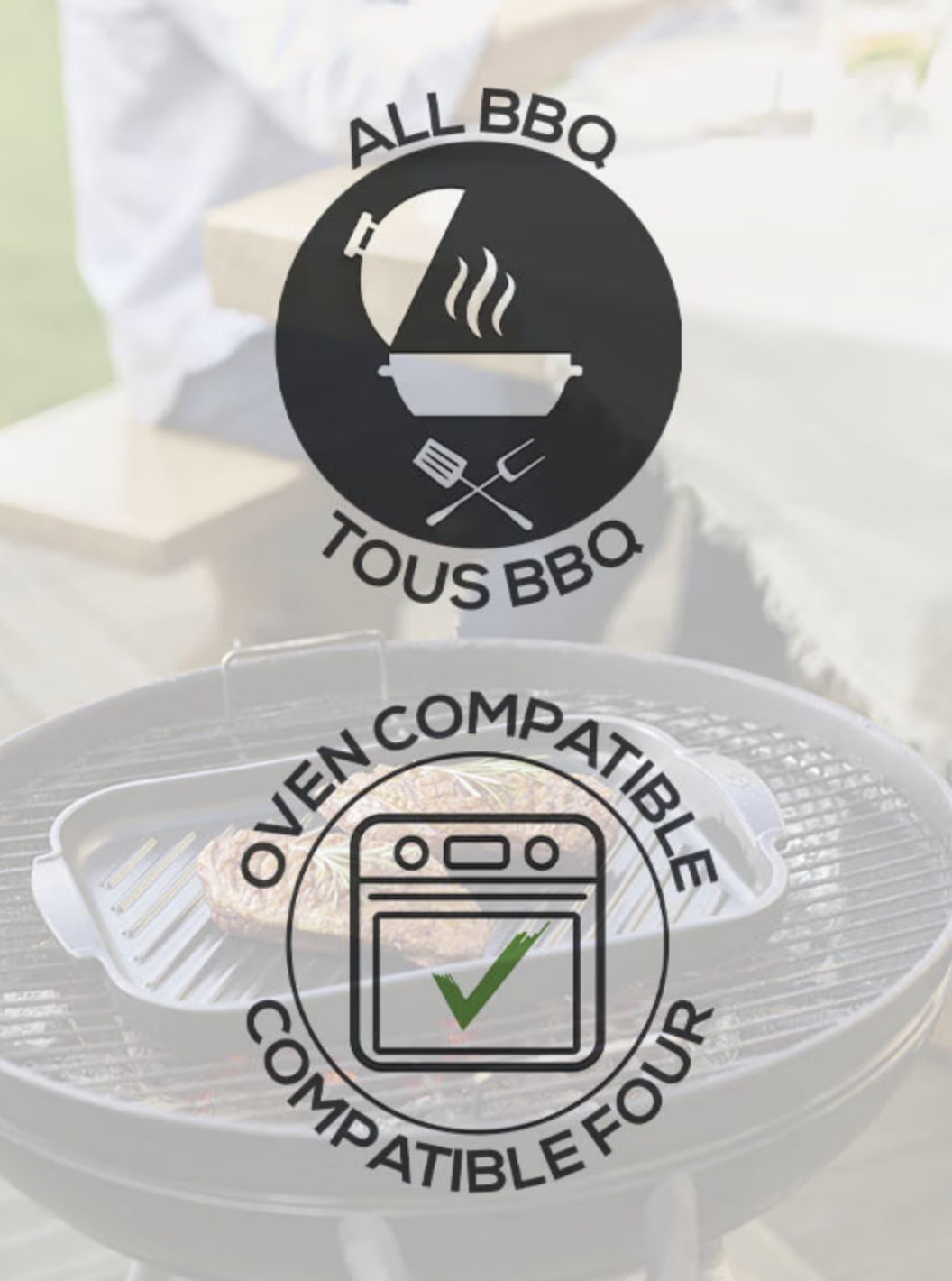 The half-moon plancha has been specially developed for “round” barbecues and can be used directly on the barbecue grid (charcoal, gas and electric) or in the oven.