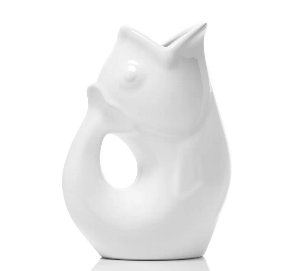 A Fish Shaped Water Pitcher That Gurgles. Add a touch of whimsy to the table with a Gurgle Pot. Designed with simple, graceful lines and crafted of durable stoneware, this pitcher produces a delightful "gurgle" as it serves your favourite beverage. Pour, Read more
