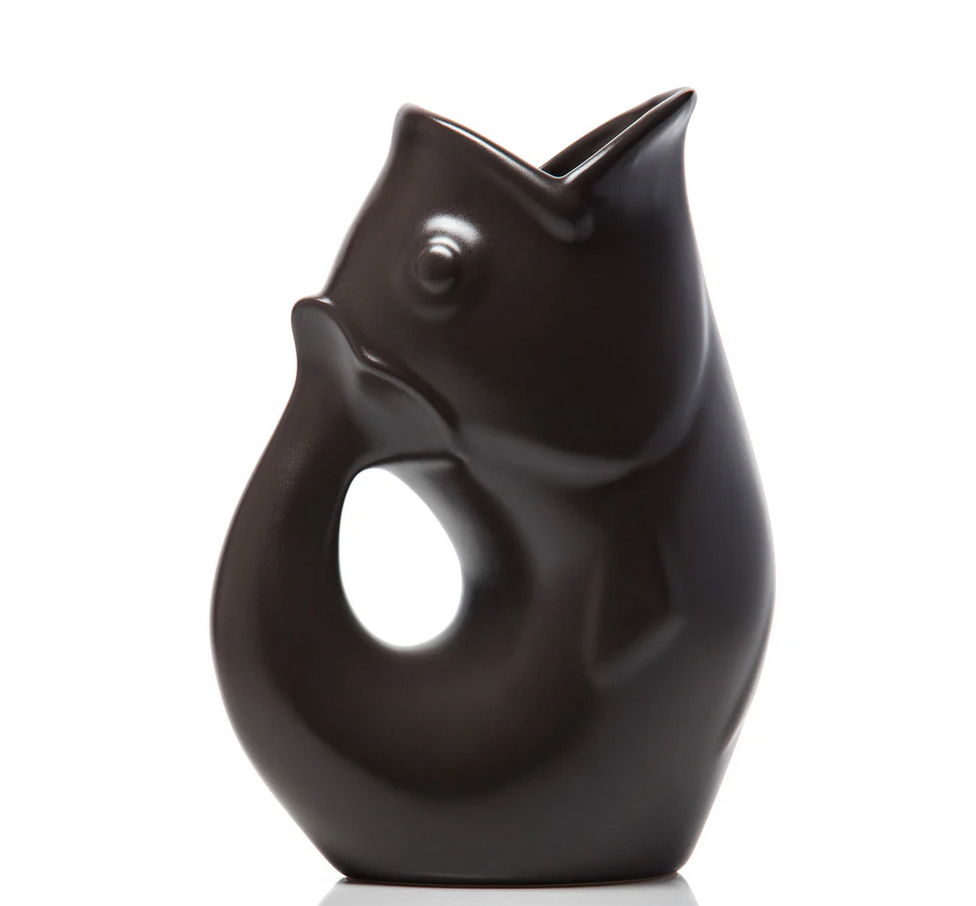 A Fish Shaped Water Pitcher That Gurgles. Add a touch of whimsy to the table with a Gurgle Pot. Designed with simple, graceful lines and crafted of durable stoneware, this pitcher produces a delightful "gurgle" as it serves your favourite beverage. Pour, Read more