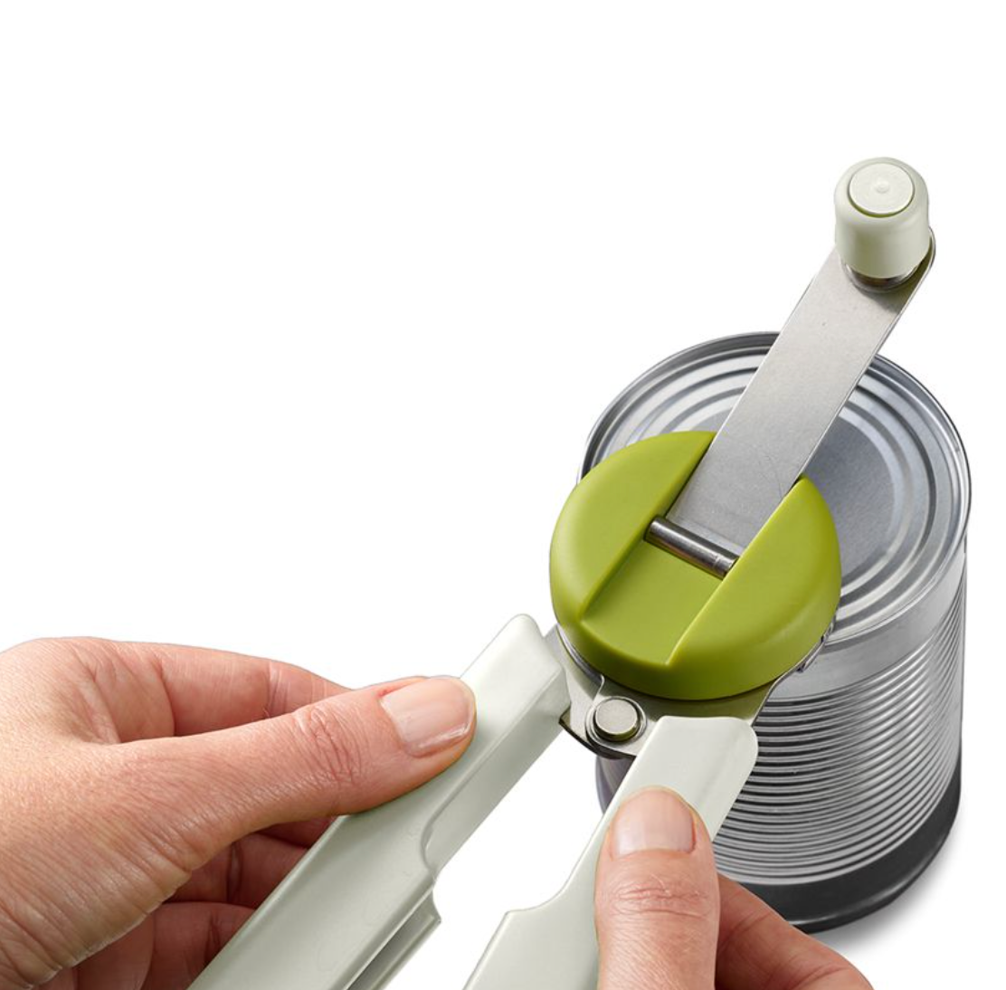 Make opening cans effortless with this easy-open can opener. Featuring a comfortable crank handle and a safe cutting mechanism, the easy-use tin opener removes the entire top of your can for easy access.