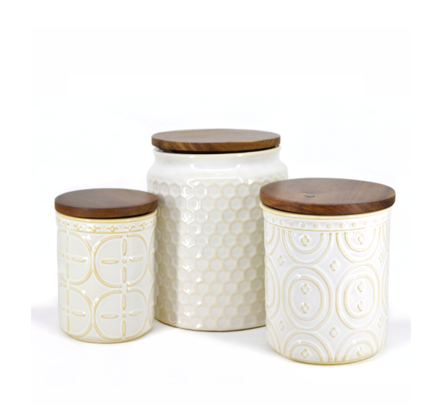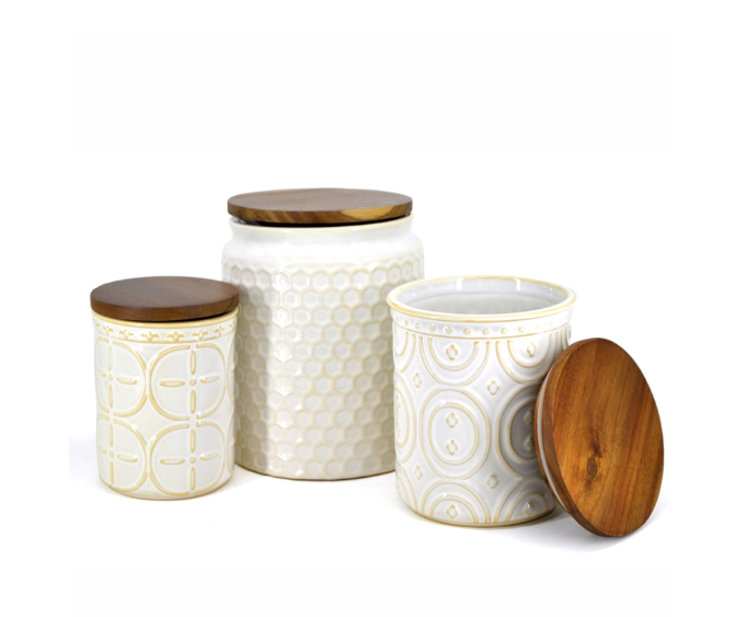 The acacia, silicone-rimmed lid provides an airtight seal, keeping contents fresh and dry.