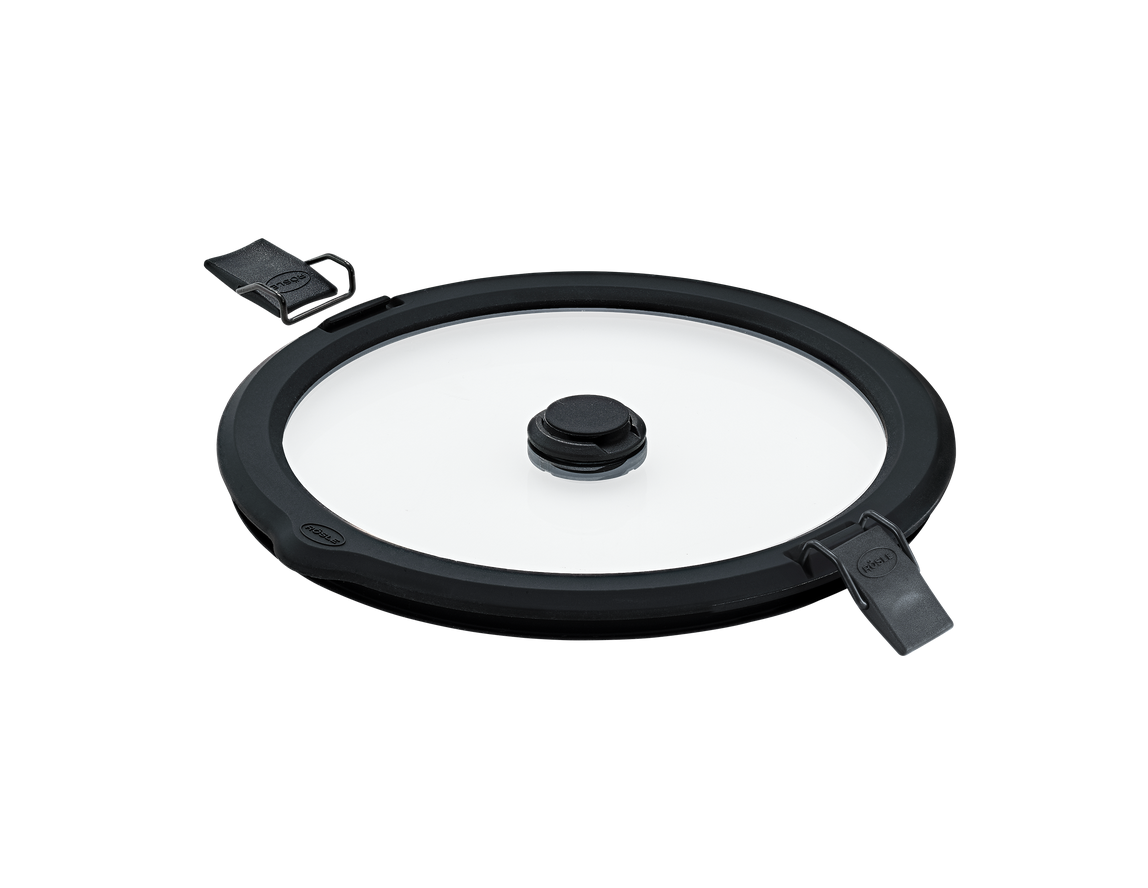 The lid is made of robust safety glass with a flexible silicone rim and is equipped with an integrated vacuum valve. This makes it easy to vacuum-seal food - for a longer shelf life and optimum flavour preservation. Even without the vacuum function, the lid remains leak-proof and airtight.