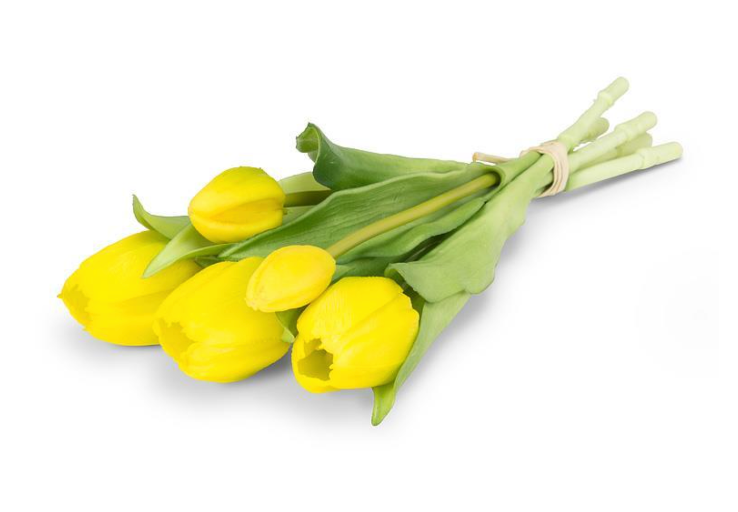 Bring the fresh beauty of spring into your home with this Lifelike 5-Stem Tulip Bunch in yellow, designed to capture the delicate charm and elegance of real tulips. Featuring softly curved petals, realistic green stems, and a natural-looking texture, these faux tulips offer everlasting beauty without the maintenance. Enjoy the blooming beauty of tulips year-round with this stunning and versatile bouquet!