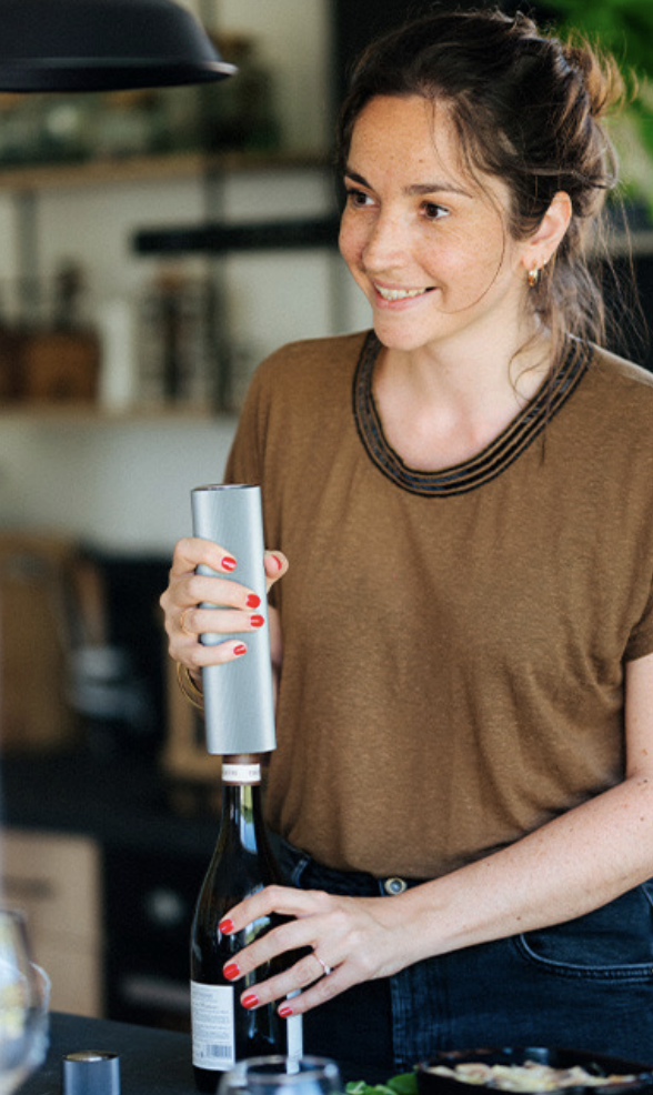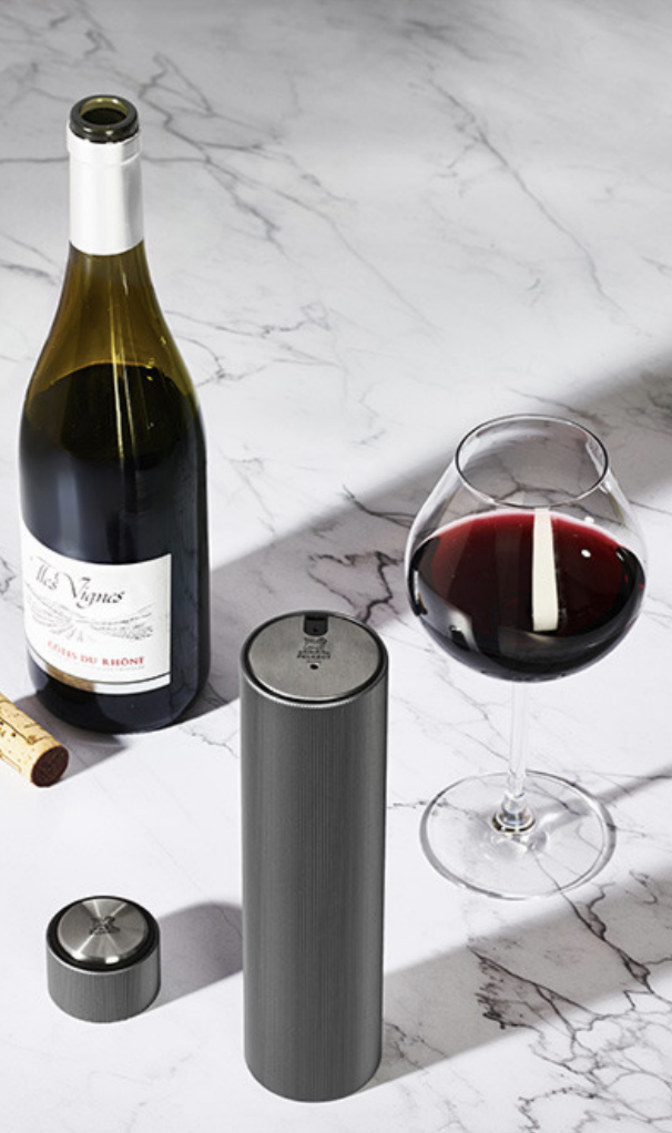 Metalworking has always been inextricably woven into Peugeot's DNA. With its aluminum finish, Line Reverse reflects Peugeot's ability to break new ground by offering a fully automatic rechargeable electric corkscrew with a clearly graphical and contemporary design. Line Reverse is fitted with the latest-generation Li-ion battery for 80 extractions with a single charge and fast charging in 2.5Â hours. Corks can be extracted by simply pressing the corkscrew down on the bottle. Once the bottle has been opened, a simple flick of the wrist will eject the cork from the corkscrew. Line Reverse is available here in a carbon finish with a matching foil cutter.