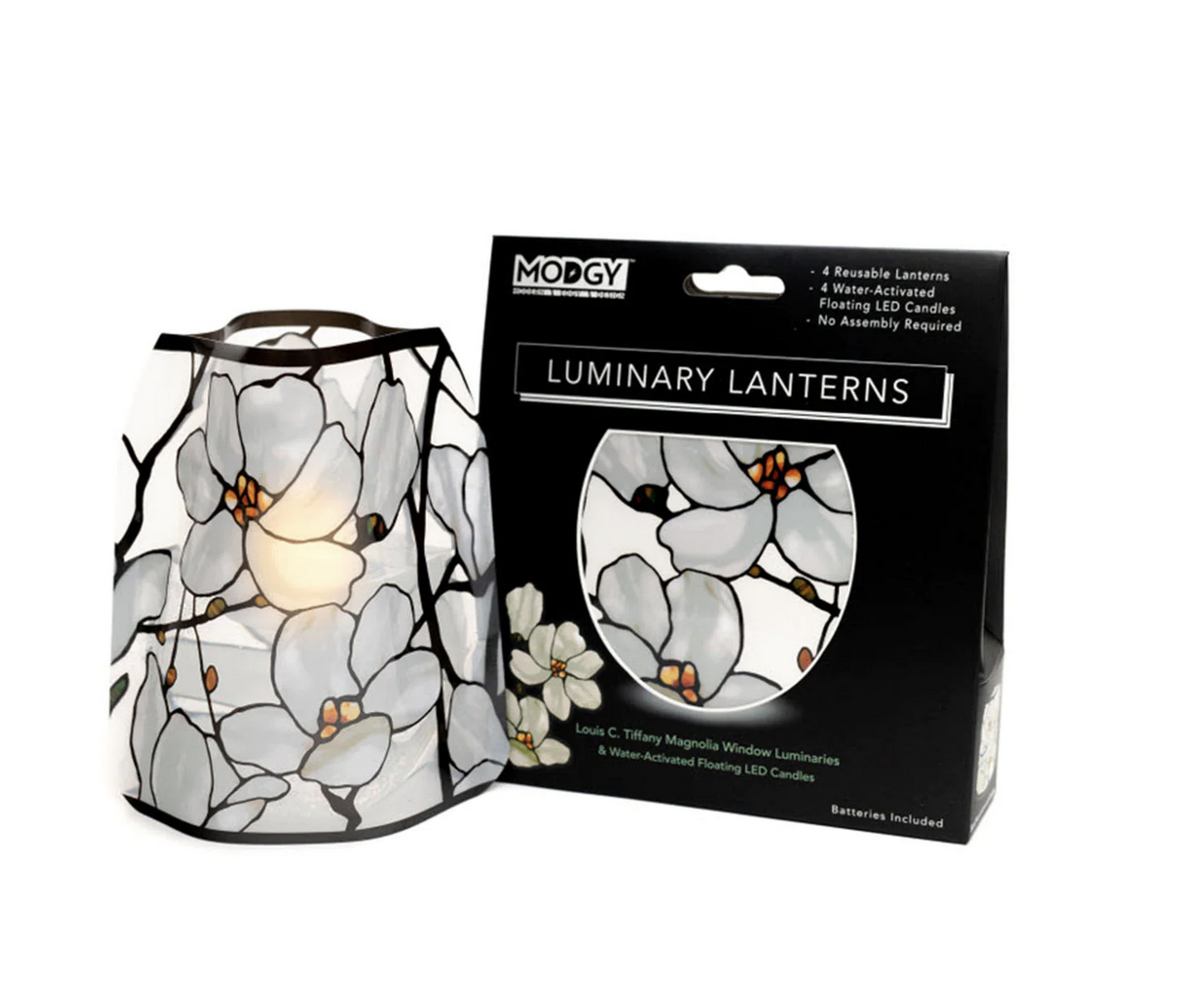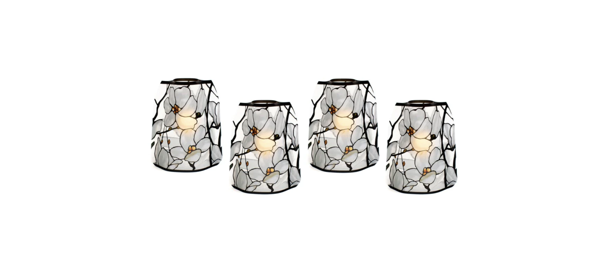 Luminary Lantern Magnolia Window & Water Activated LED Candles 4 Each