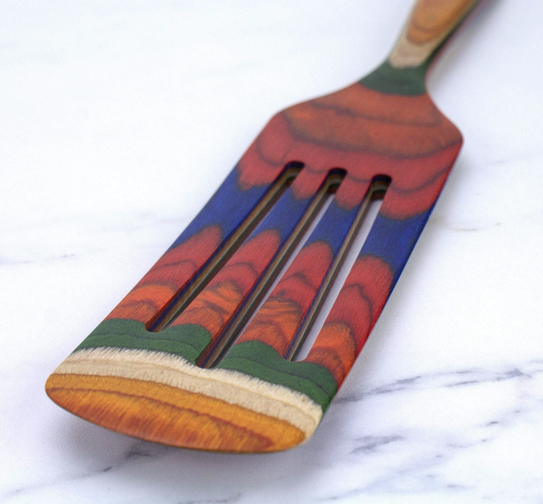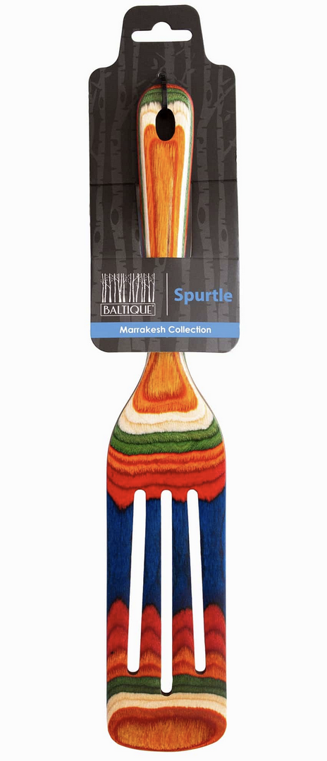 Add a splash of warming colour to your kitchen with the Baltique® Marrakesh Collection Large Turner. This eye-catching utensil is masterfully crafted from layers of coloured birched wood to create a gorgeous colour array. The Marrakesh Collection features a rainbow blend of red, green, orange, blue and natural wood colours. The colourway was inspired by the bright and colourful marketplaces of Morocco. The large turner is a versatile tool in the kitchen for both cooking and serving!