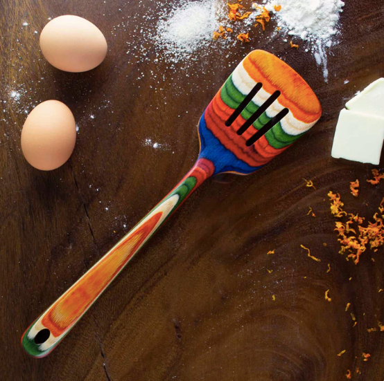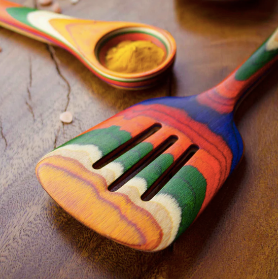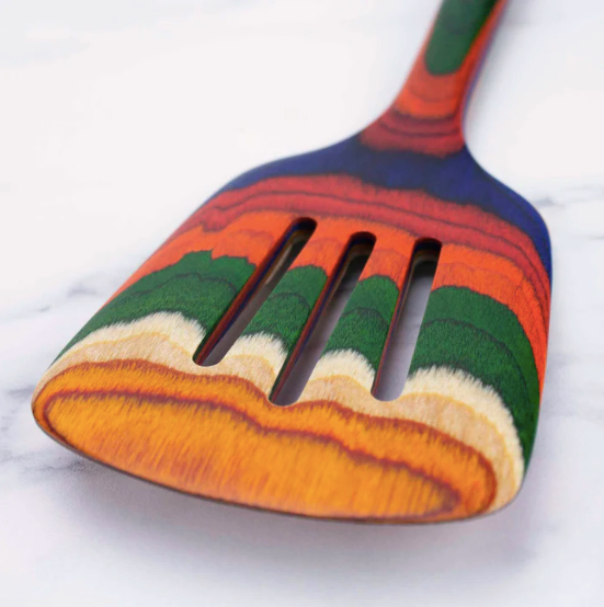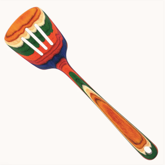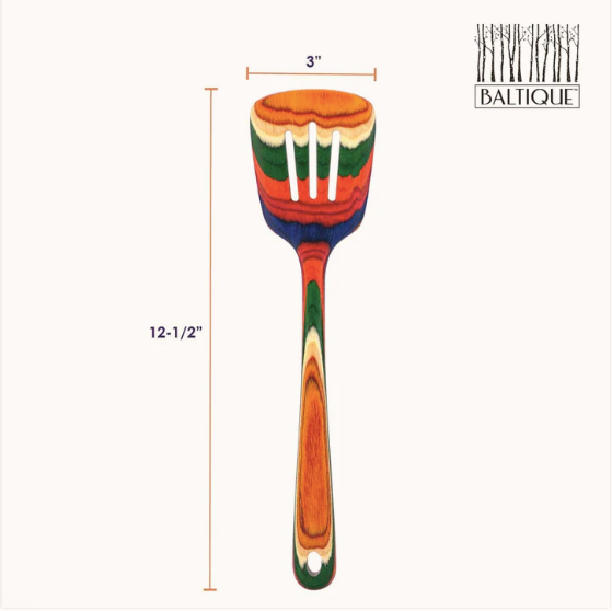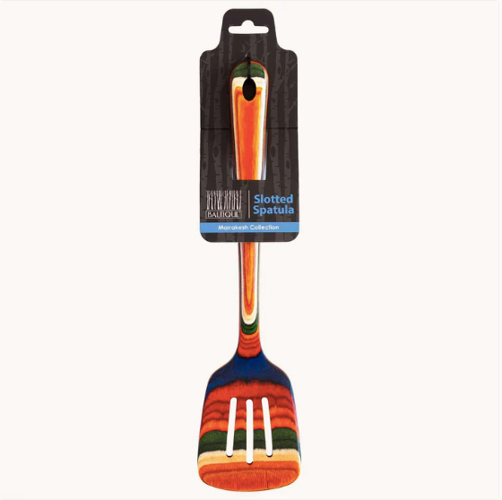Add bright, bold colour to your kitchen with our Baltique® Marrakesh Collection Slotted Spatula! Masterfully crafted from layers of coloured birch, this spatula features a rainbow blend of red, green, orange, blue and natural wood colours. Read more