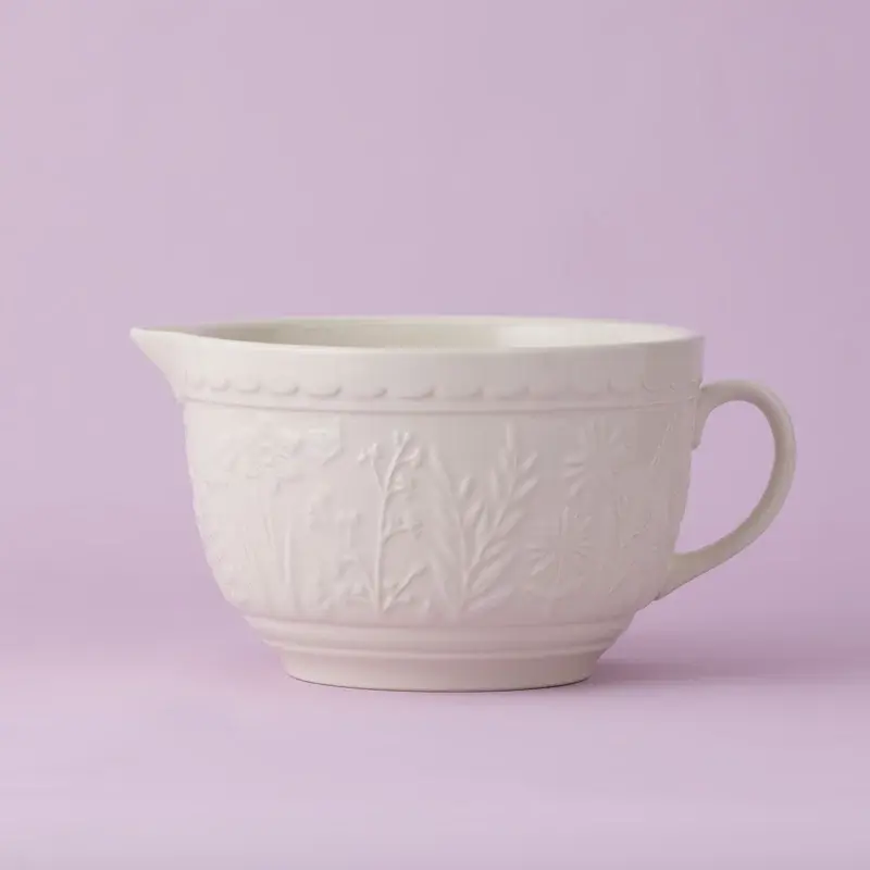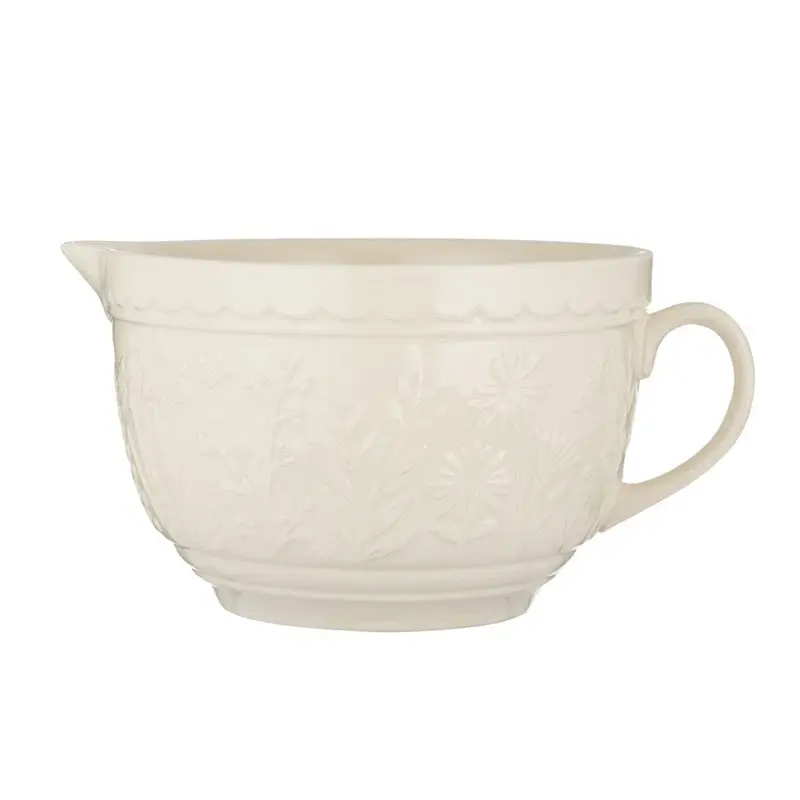 The Mason Cash In the Meadow collection is intricately embossed with delicate florals and foliage, with a beautiful colour palette. A perfect addition to any kitchen. Made from durable stoneware, the batter bowl is the perfect solution for mixing batter or whisking eggs. Making it an essential item for the everyday baker.