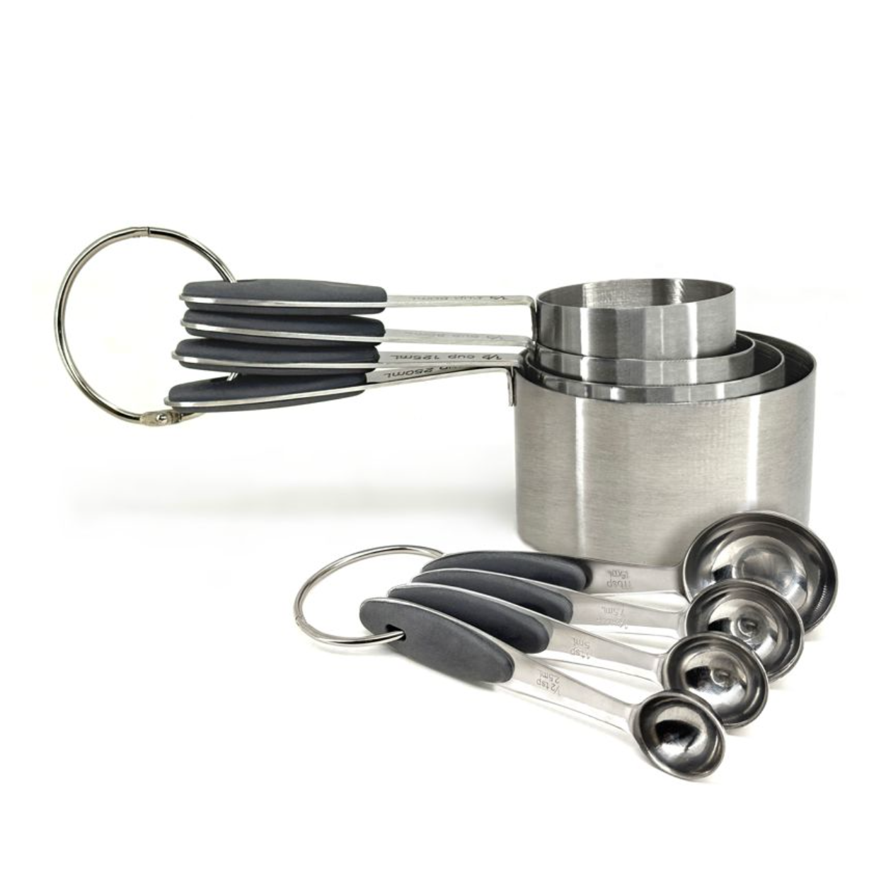 - Measuring Cups & Spoons Sets, stainless steel with soft grip handles.