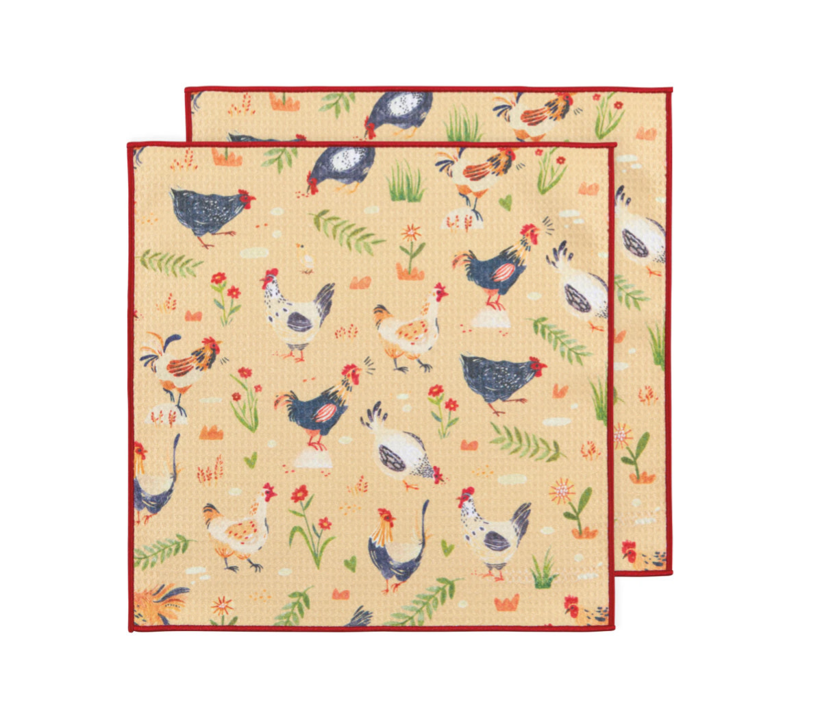 Soft, absorbent microfiber makes these Renew Free Range dishcloths multi-purpose additions to the kitchen. Dishes and counters get a lint-free and streak-free clean-up with these quick-drying wonders. Feathered friends rule the roost in the cozy farmyard Read more