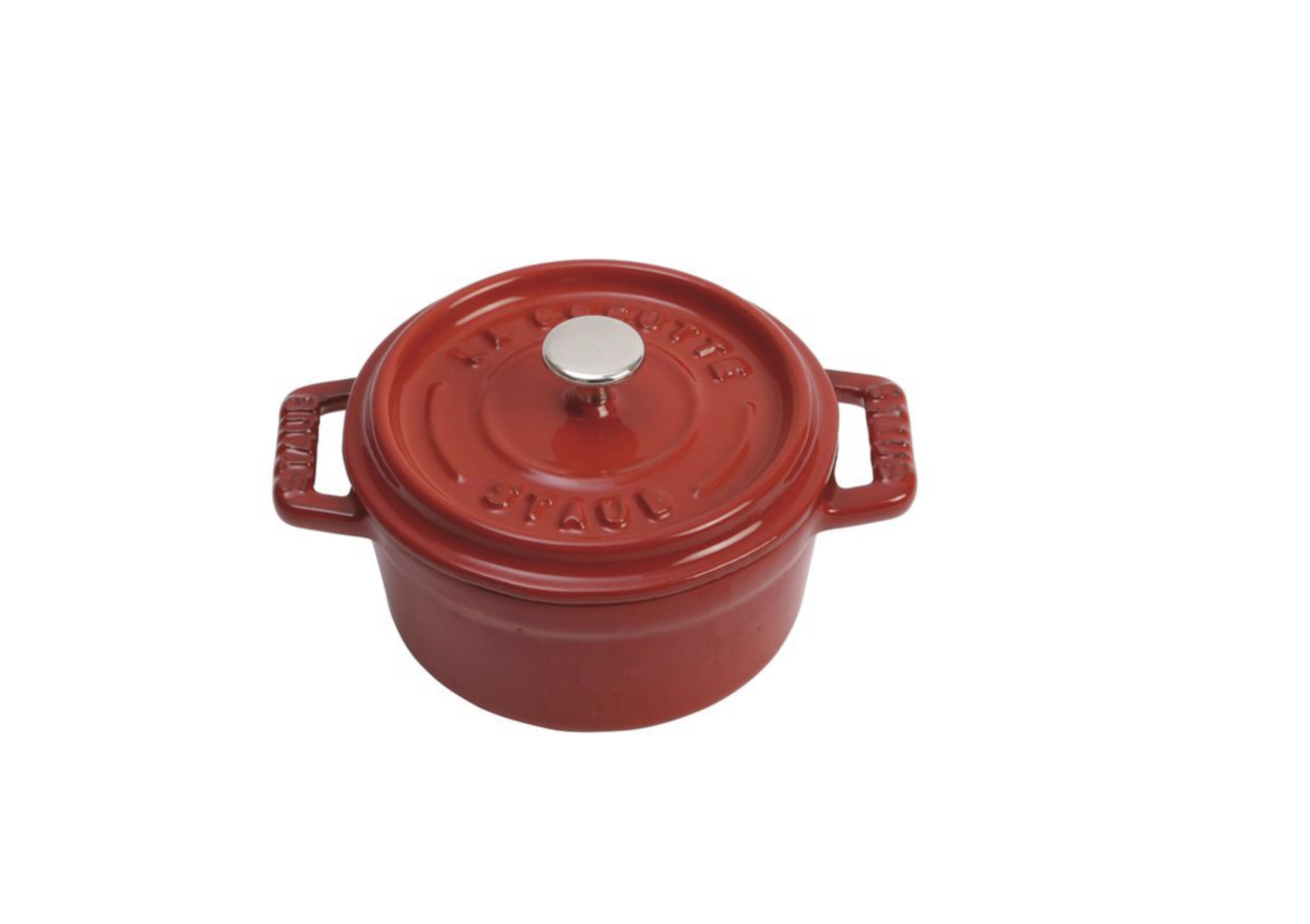 The round mini cocotte in cherry will show you new possibilities to gently cook different dishes. The cast-iron, enameled casserole dish has two handles and a snug-fitting lid. It measures 10 cm in diameter, is 7 cm high without its lid, and can hold up t Read more