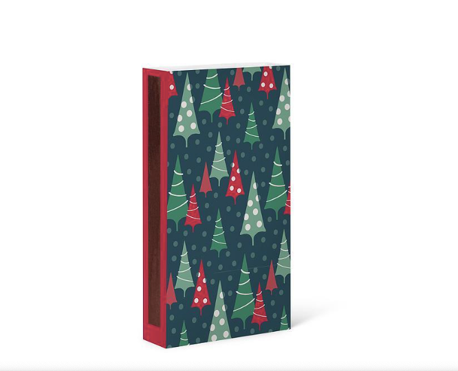 Light up everything from candles to fireplaces with this Mod Trees Matchbox. An Abbott Exclusive, this matchbox features modern trees created by graphic designer Kris Ruff – a wonderfully festive accent to any holiday decor. Includes 45 matchsticks.