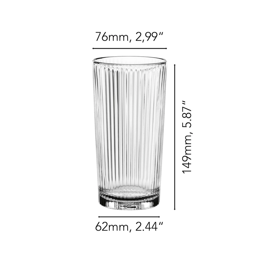 The Long Drink is ideal for mixed cocktails and non-alcoholic beverages. Its tall shape maintains effervescence, and its generous size provides space for both liquid and ice.