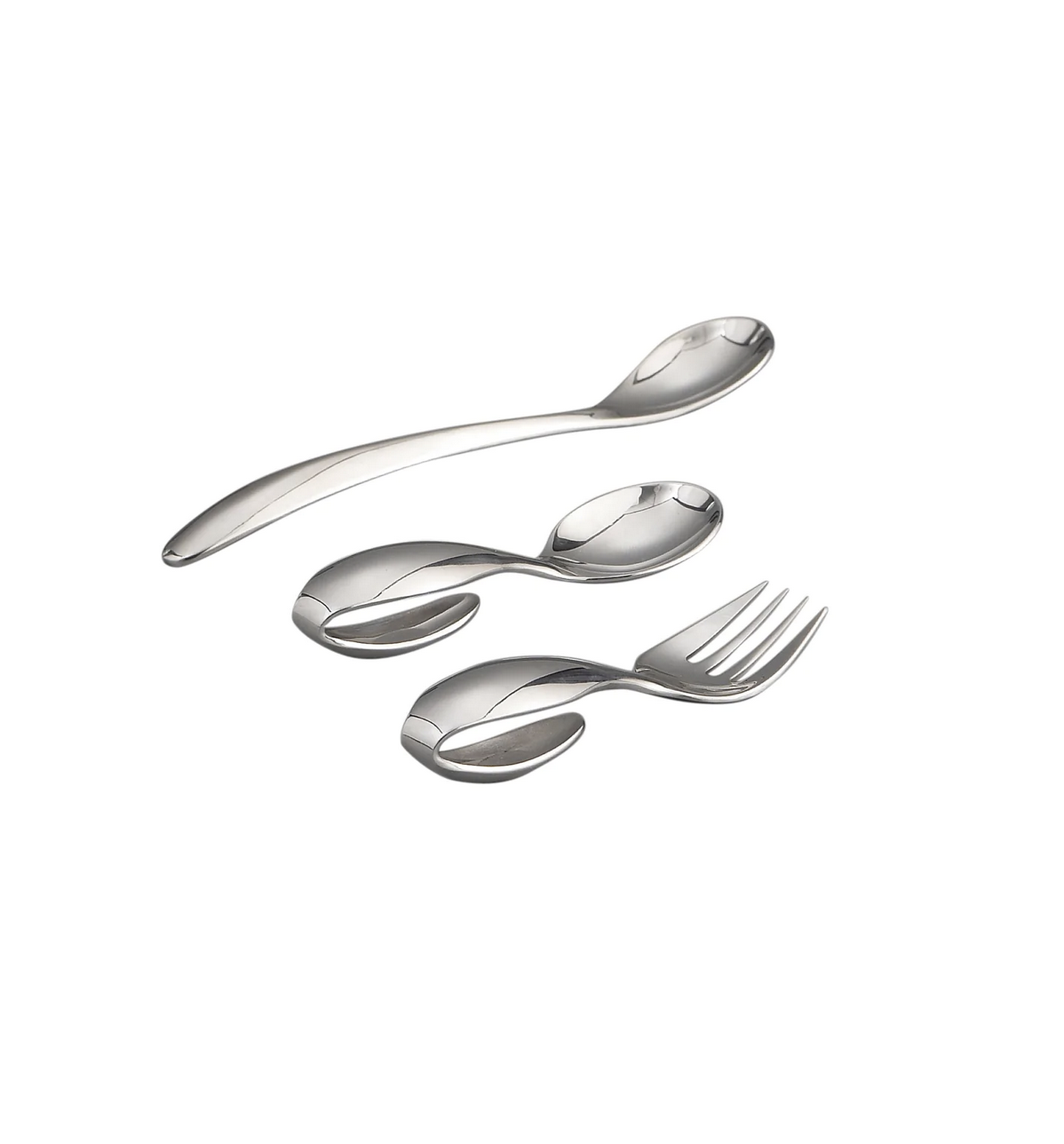 - 3-piece set includes loop spoon, loop fork, and feeding spoon