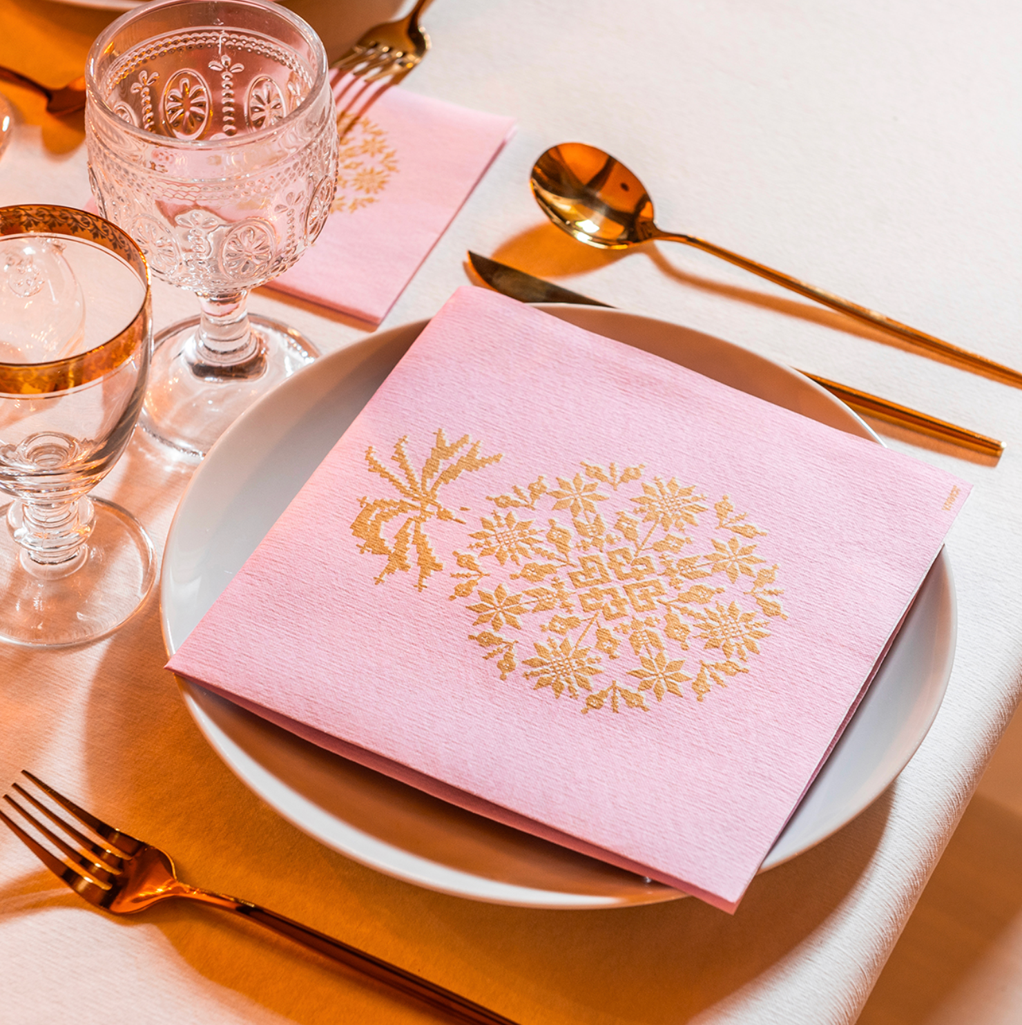 Francoise Paviot Dinner Napkins - created from an airlaid paper material. This collection uses a non-woven material which is soft yet firm, and offers you a stylish mid-point between textile and paper tableware. Napkins are 40 x 40cm, 20 pcs. per package. Made in France.