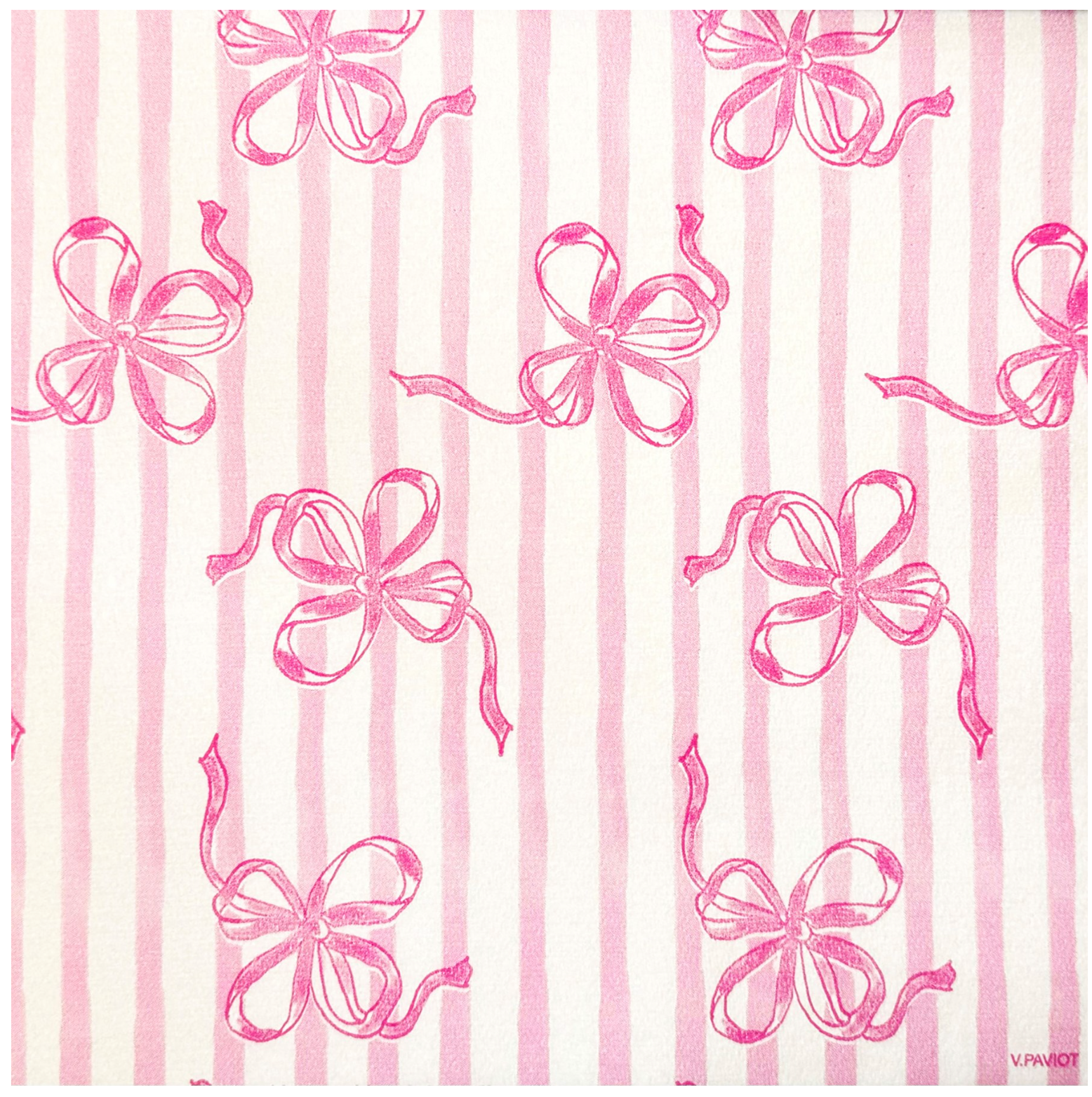 Pink stripes and subtle matching bows come together in a delicate pattern, perfect for enhancing your receptions and celebrations on sunny days.