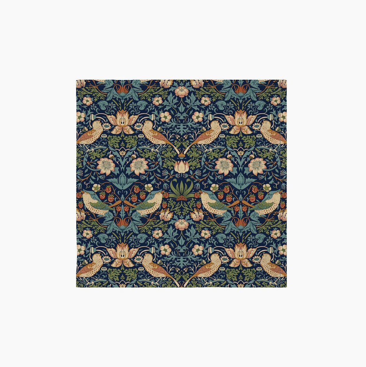 Strawberry Thief has, in recent years, become Morris's most famous design - inspired by the thrushes he saw taking fruit and berries from his garden at Kelmscott Manor. The warm tones of navy blue, green and old gold work beautifully to produce a warm, vi Read more