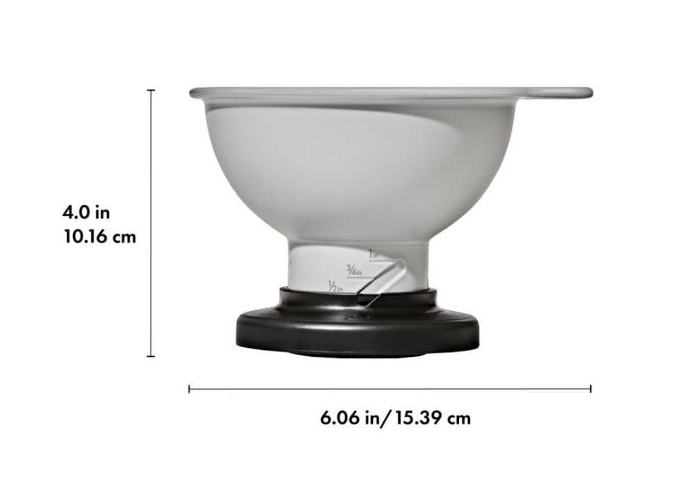 Preserve summer’s bounty with the OXO Good Grips Adjustable Funnel. Whether you’re making jams, preserving vegetables, bulking up on tomato sauces or savouring fall apples, this funnel will make the canning process easier. Canning reduces food waste – but the process can be daunting. With this Adjustable Funnel, canning is easier, more comfortable and more repeatable – whether you’re new to canning or if you’ve been canning all your life. The adjustable funnel features a wide neck and a large bowl, which allows larger ingredients like tomatoes and chunky jams to easily ladle into jars and makes less of a mess by preventing splatters while pouring. Measurement markings on the funnel neck allow you to adjust the funnel collar up or down based on amount of headspace needed for your recipe. The large tab makes it easy to lift the funnel from jar to jar for uniform filling, while the collar stabilizes the funnel on jars of any size, keeping the rim covered through jar filling. Adjustable Funnel is dishwasher safe – parts disassemble for easy cleaning.