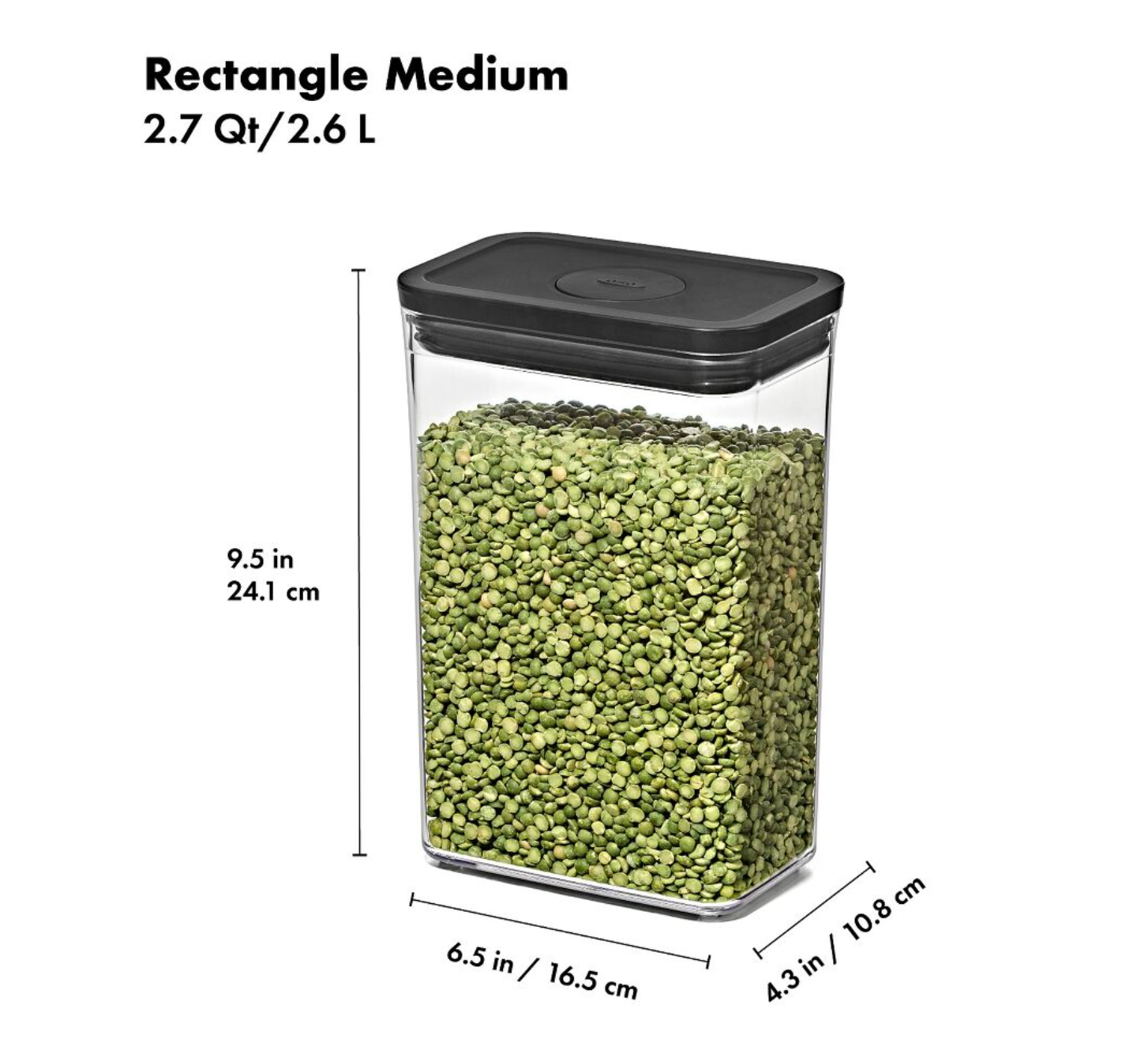 The POP Container — Rectangle Medium — 2.7 Qt / 2.6 L — Matte Black is the ideal size for organization and storage of pantry staples. Use them to hold rice, sugar, pasta and flour. POP Containers preserve freshness with the push of a button. Use the butto Read more