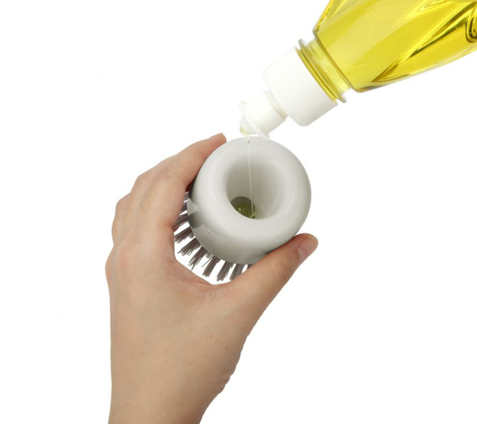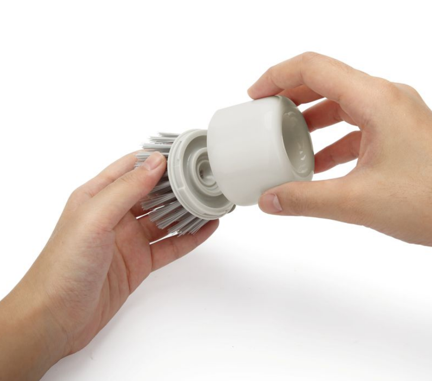 - Features a screw-on brush head with a soap fill hole for gradual soap release while cleaning.